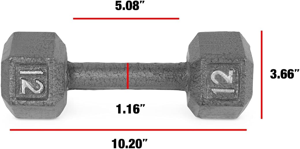 WF Athletic Supply Cast Iron Solid Hexagon Gray/Black Dumbbells, Strength Training Free Weights Set of 2 for Women and Men, Hand Weights Sold by Pairs, Multi-Select Size Options Available