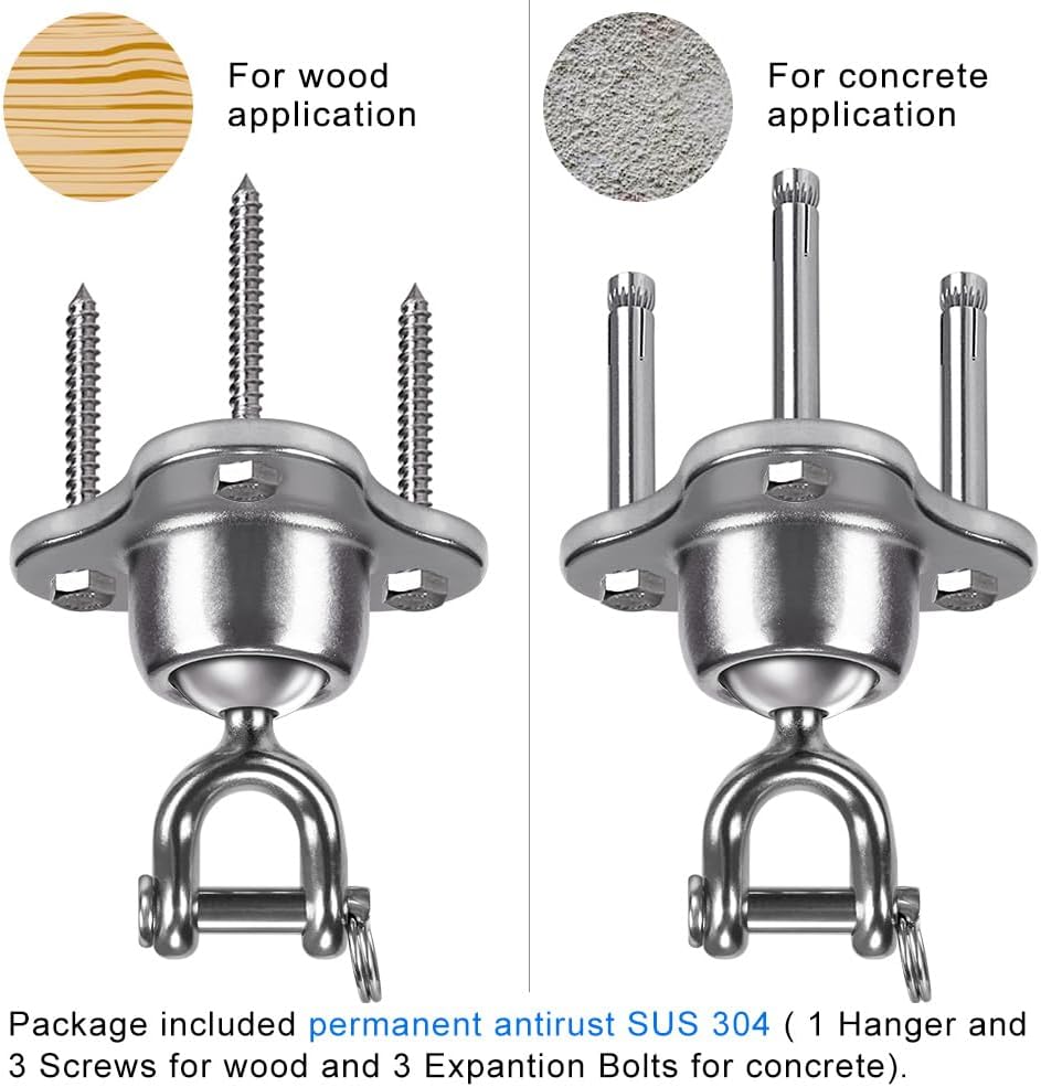 - 【Durable Use】Heavy duty swing ceiling mount hanger has 3 mounting holes that use triangular balance design, improved stability and safer than 2 holes installed, can support up to 900 pounds. It's also a good choice for indoor outdoor hammock swing hanging kit, tire swing set hardware, swing set accessories