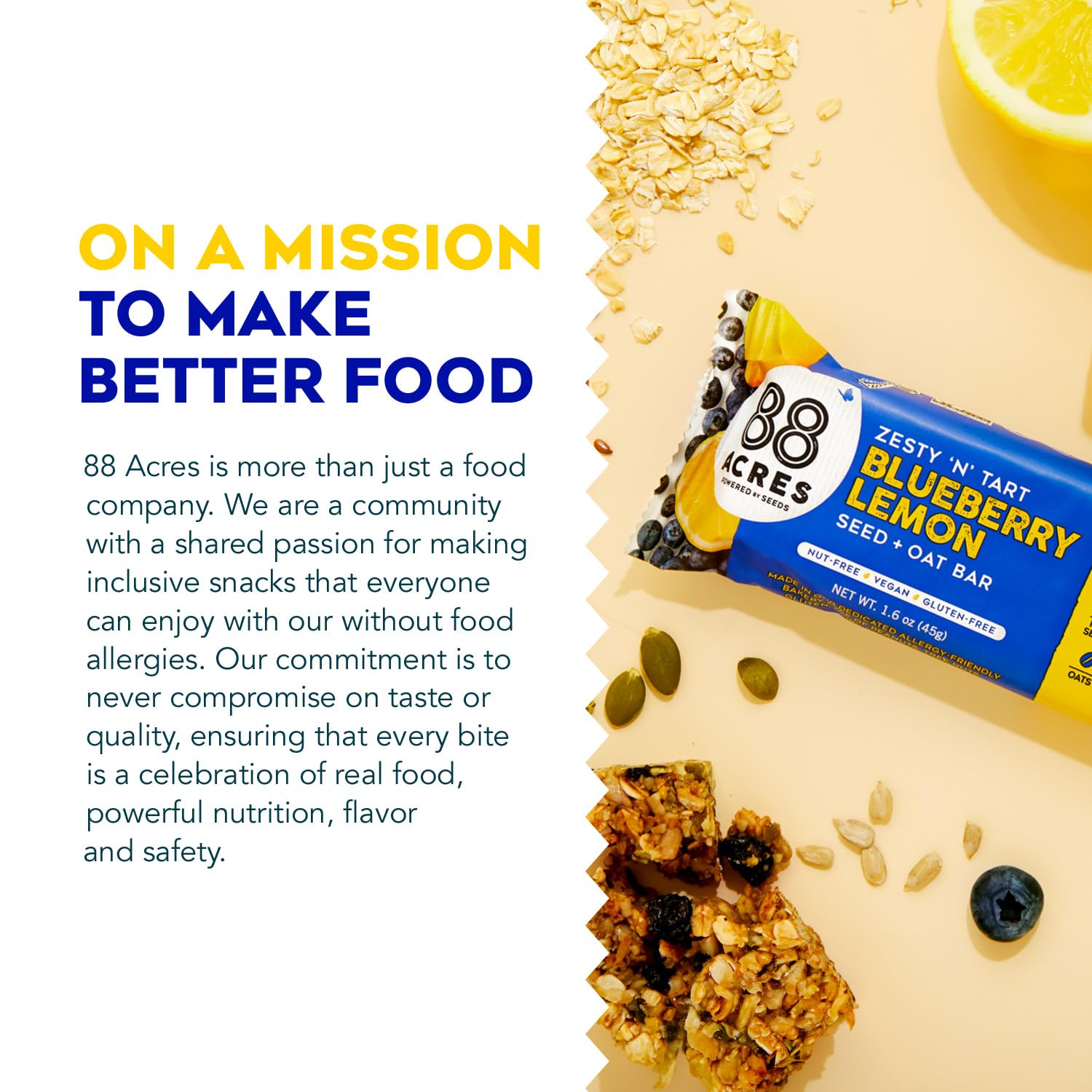 - ENJOY ON THE GO: 88 Acres Bars are the perfect treat to share with the ones you love. Plus, enjoy them on-the-go, bring them to school and work, add them to lunch boxes, and more!