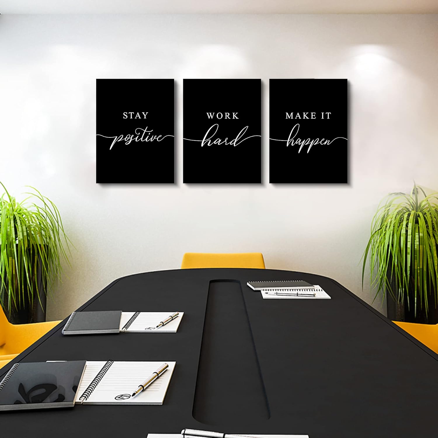 - 【Pefect Home Decoration Ideas】 With excellent slogan matching and positive letters design, this black office decor modern wall art set is easy to mix and match different office styles to create a working hard vibe into any space, like office, boss office, gym, classroom, bedroom, , dorn, home office, office hotel, restaurant bar, or any other occasion.
