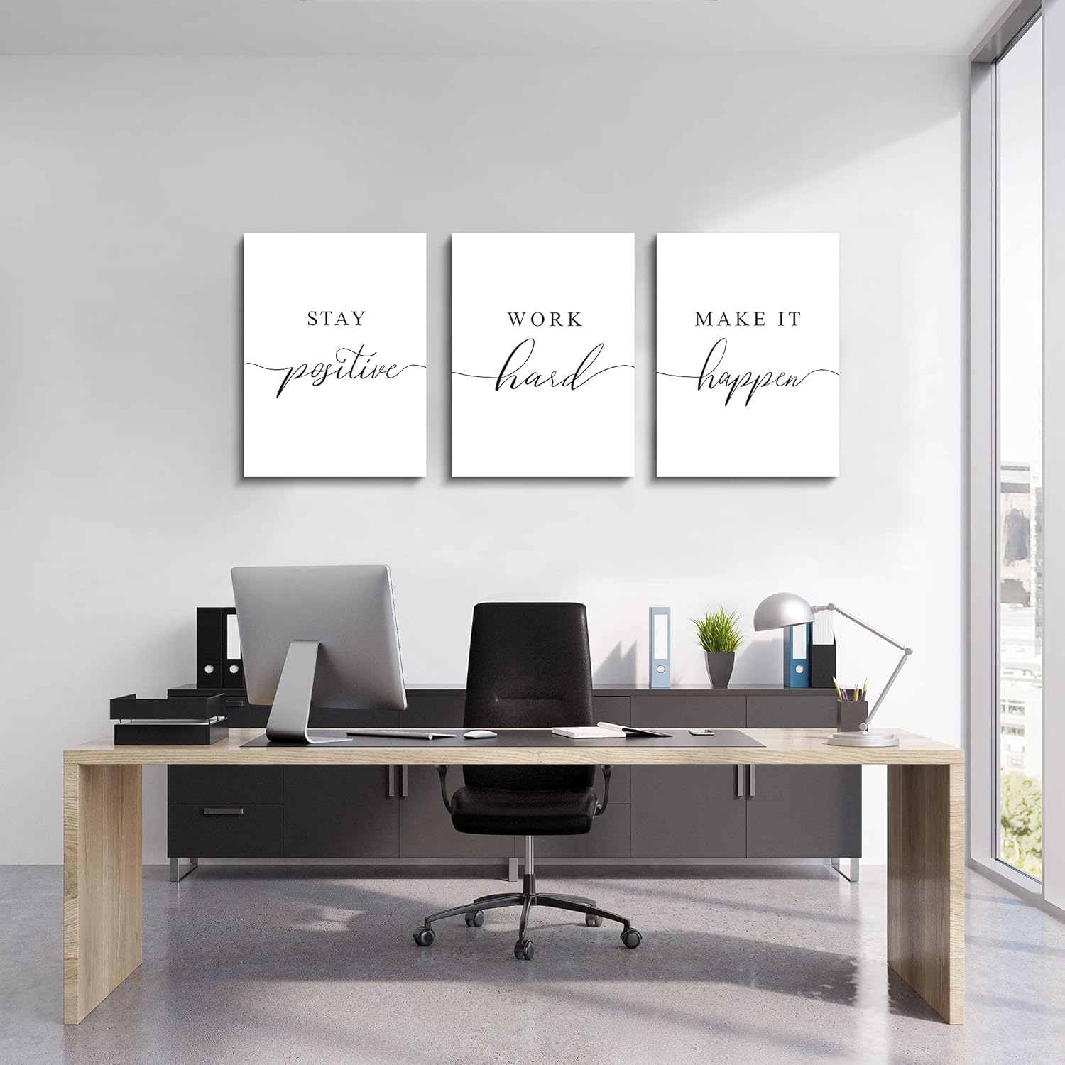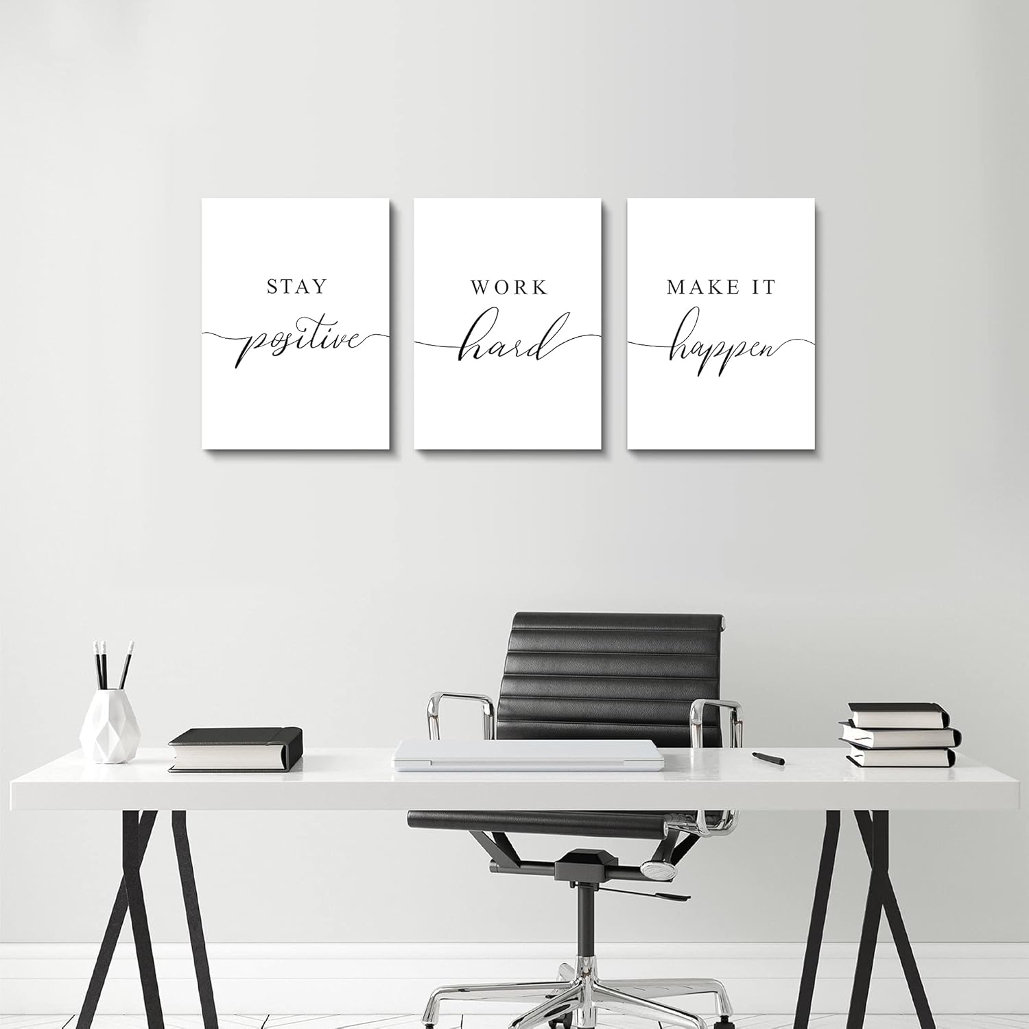 Framed Canvas Wall Art Positive Quote, Office Art, White Large Poster, Motivational Artwork Set of 3 Prints, Inspirational Poster Prints (G-3pcs,12x16inchx3pcs)