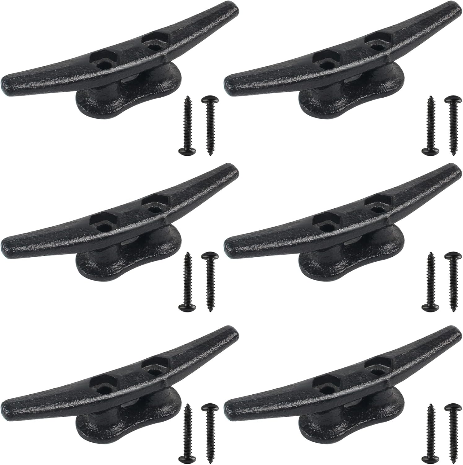 - 【High Quality Material】The 4 inch dock cleat is made of durable iron and treated with electrophoretic coating to resist various weather conditions. The black electrophoretic coating on the metal boat cleat provides strong anti-corrosion and rust-free capabilities.The boat cleat hooks are made of high-quality materials and processed with excellent craftsmanship. They are very practical and can be used indoors and outdoors.