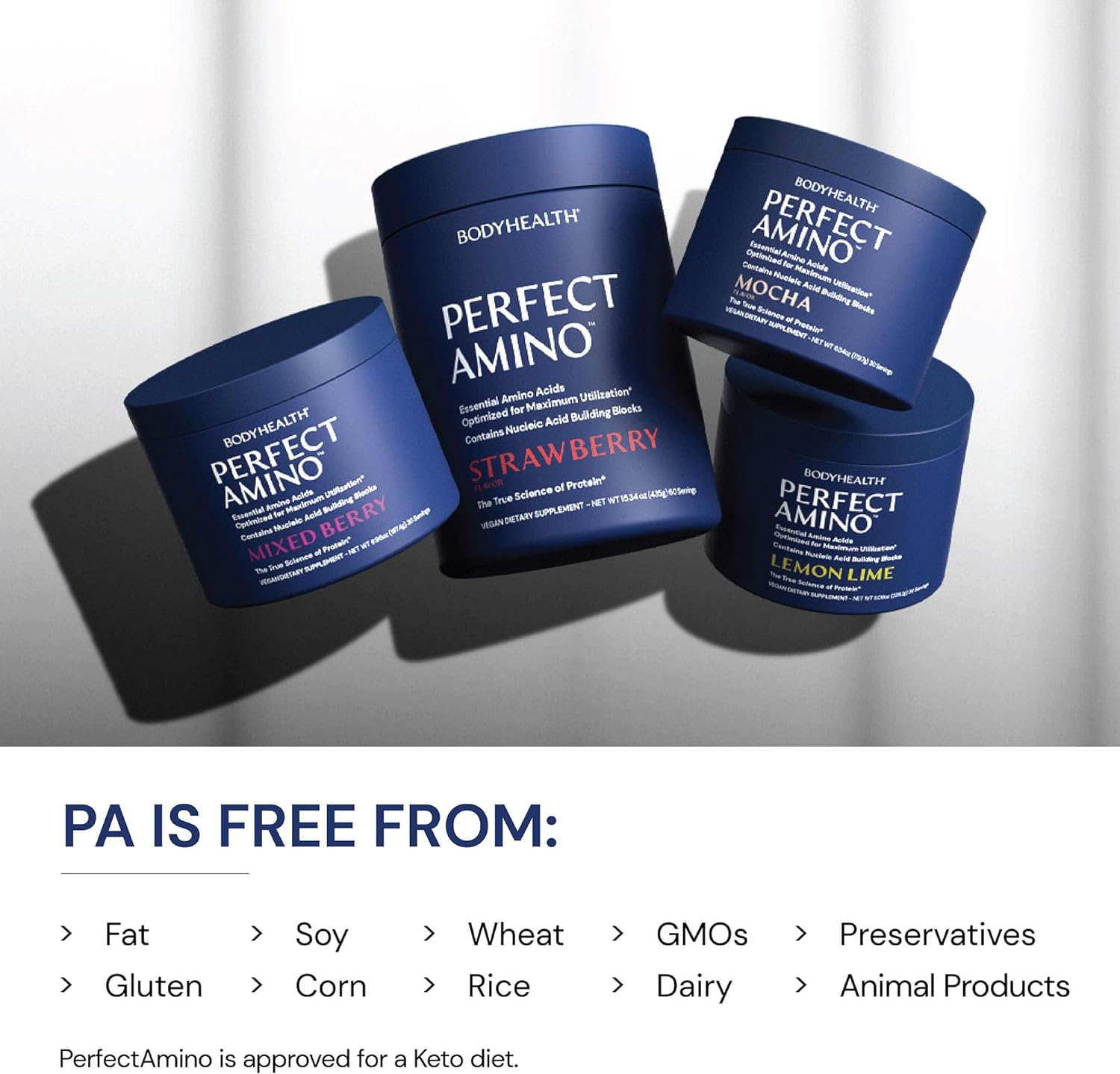 - 99% UTILIZED FOR POWER AND RECOVERY. Perfect Amino powder provides pure essential amino acids and vegan proteins needed to promote fast muscle recovery and tissue repair.*