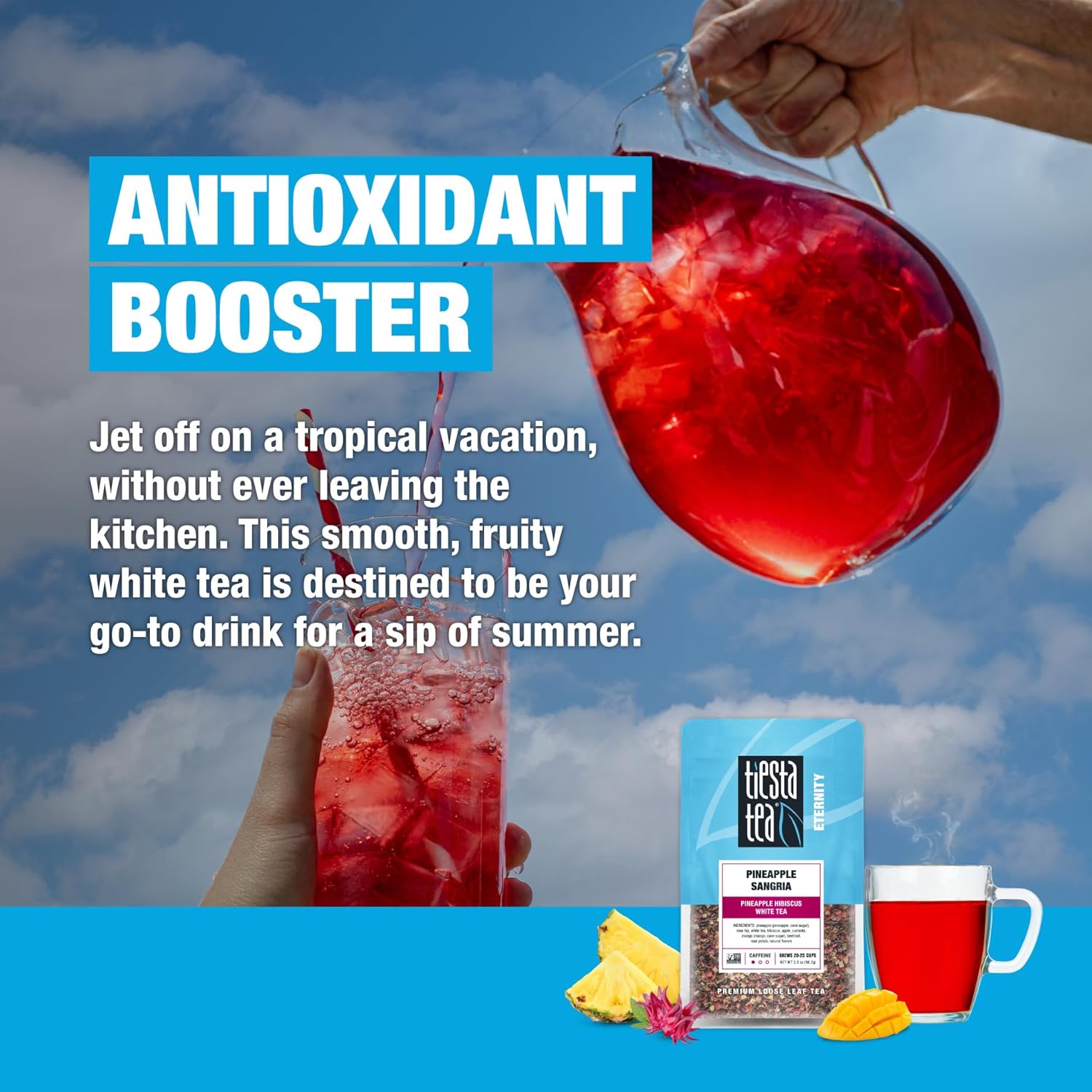 - TROPICAL PINEAPPLE HIBISCUS WHITE TEA: Escape to a tropical paradise with Tiesta Tea’s Pineapple Hibiscus White Tea. Perfect for summer, this smooth and fruity blend offers instant refreshment, whether you enjoy it hot or iced. Relish the essence of summer in every sip, no matter the temperature.