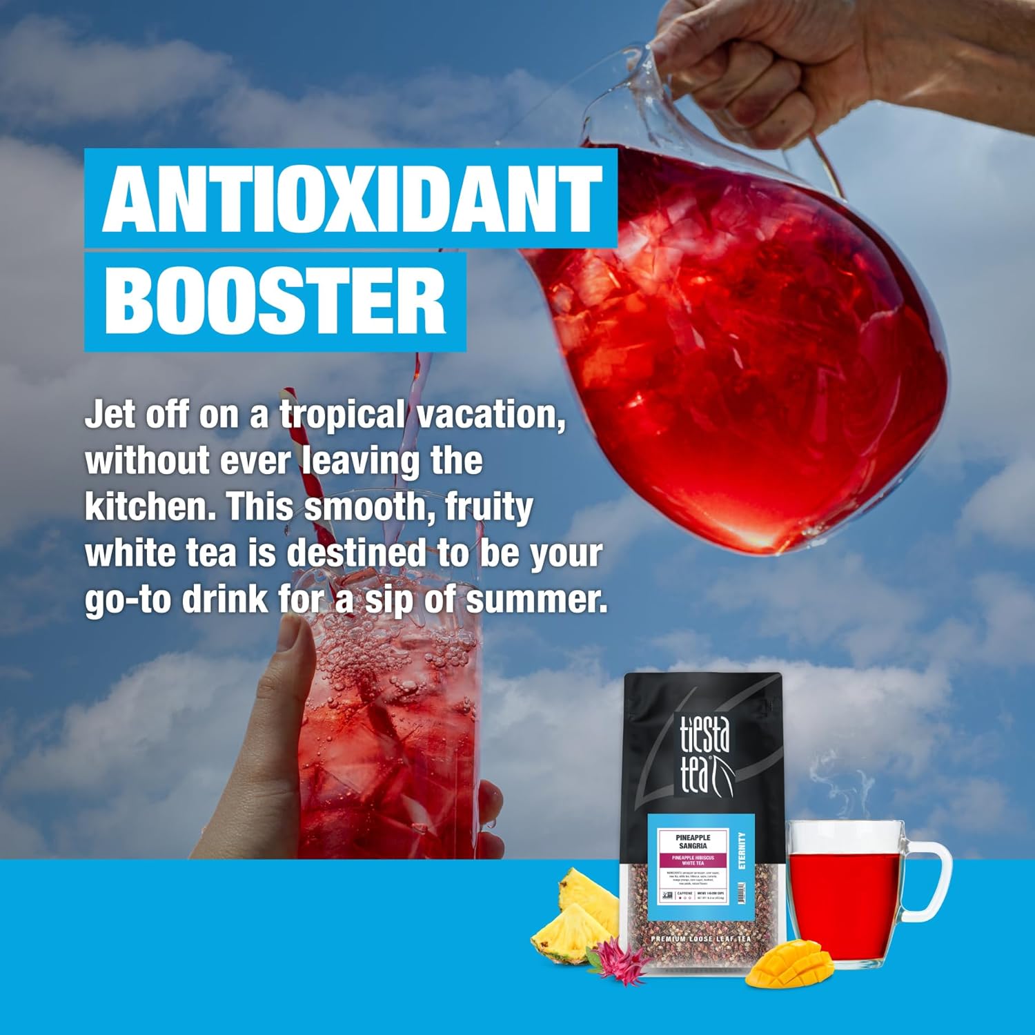 - TROPICAL PINEAPPLE HIBISCUS WHITE TEA: Escape to a tropical paradise with Tiesta Tea’s Pineapple Hibiscus White Tea. Perfect for summer, this smooth and fruity blend offers instant refreshment, whether you enjoy it hot or iced. Relish the essence of summer in every sip, no matter the temperature.