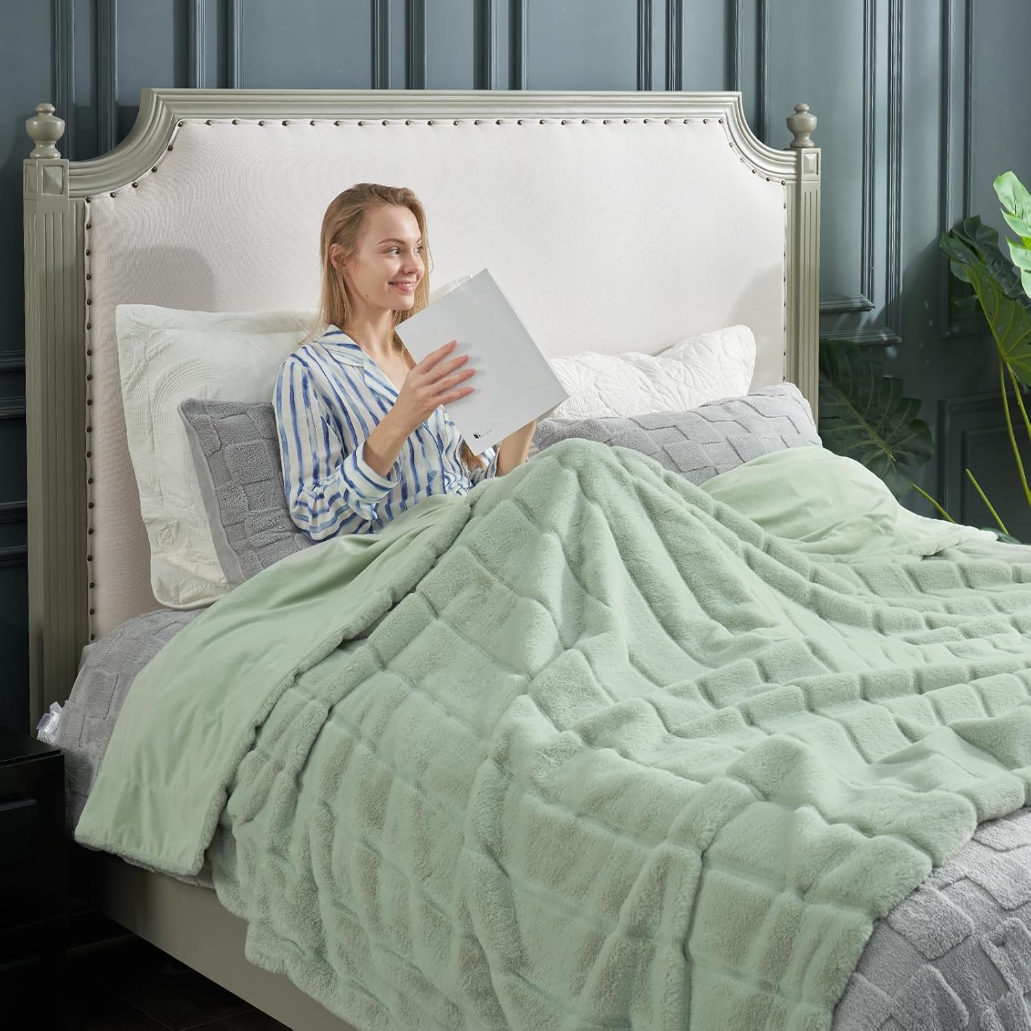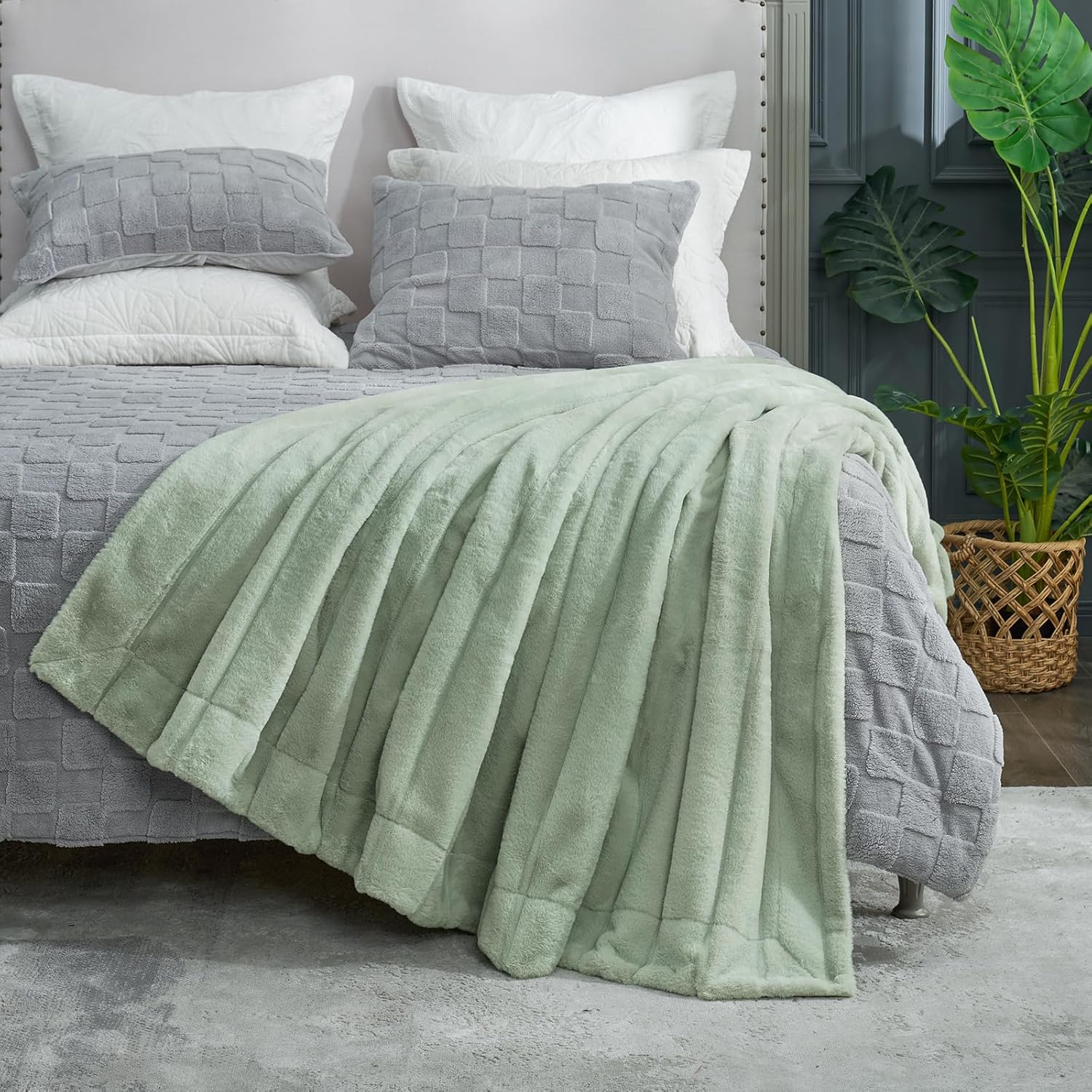 Cozy Bliss Faux Fur Throw Blanket for Couch, Cozy Soft Plush Thick Winter Blanket for Sofa Bedroom Living Room, 60 * 80 Inches Green
