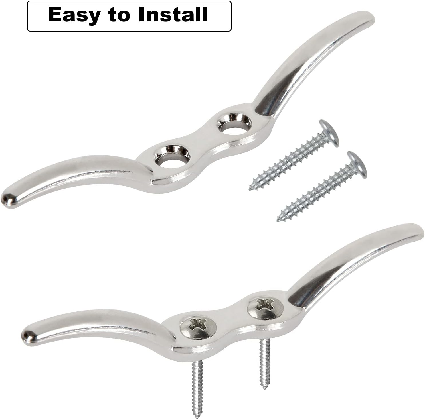 APACALI Metal Rope Cleats Boat Cleat 2 Inch 4 Inch 6 Inch Boat Flagpole Cleat Hook, Boat Deck Dock Cleats with Mounting Screws for Fixed Rope or Home Decor (Blinds Hook Curtains Sun Shade Ropes
