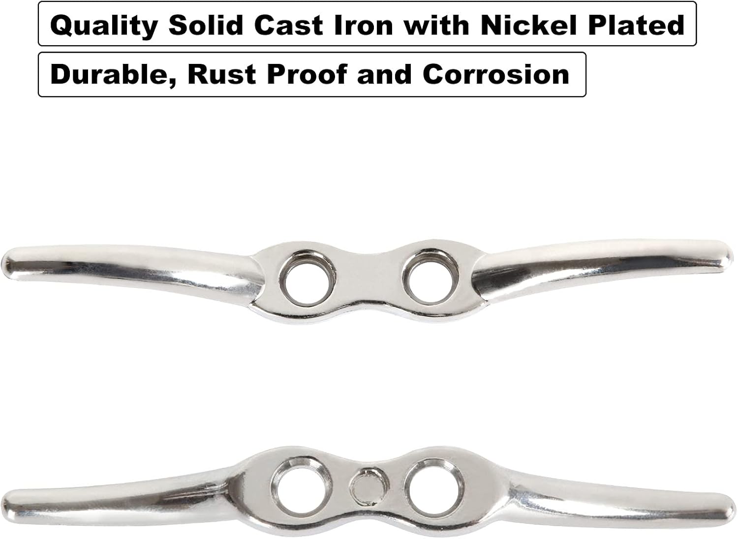 - Quality Cast Iron: The boat rope cleat is made of high quality solid cast iron with nickel plated surface, which is durable, resistant to fracture and corrosion, rust proof and bright and beautiful appearance, and can be used for a long time.