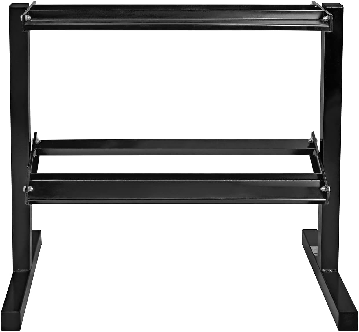 - πͺ COMPACT DESIGN - This dumbbell rack features a compact two-tier storage space. A flat top rack and a precision angled lower rack allow easy access to dumbbells. It allows easy storage and prevent accidental dumbbell slip.