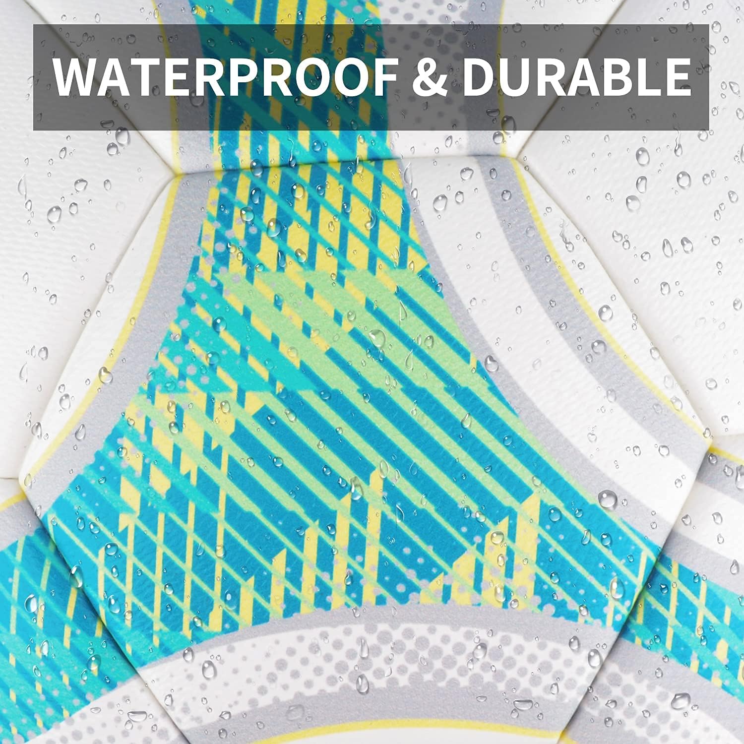 - ⚽WATERPROOF & DURABLE: Special Thermal-Bonding technology make the 5 soccer balls more durable and no thread broken , reduce the water seepage inside the body. Upgrade version of the bladder keep good shape and not easy to burst, provide excellent strength and stable moving trail.