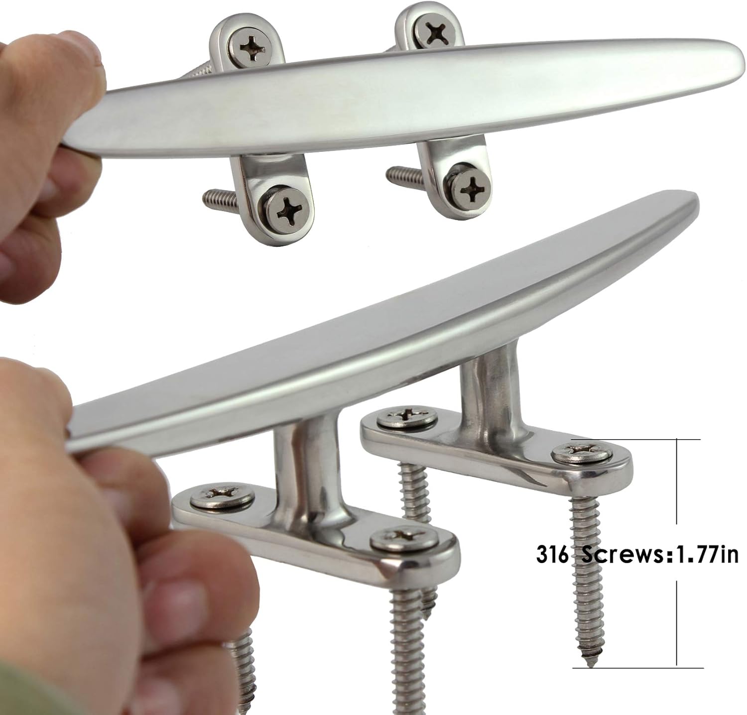- 【Exquisite Workmanship】Our stainless steel boat cleats is high polished surface,precise,smooth and beautiful;for mirror-like appearance to match marine uses watercraft/boat/yacht,boat docks, decks, piers for tying up boats, kayaks. all of our stainless steel boat cleats for dock are strict tested to ensure the best quality,these stainless steel dock cleats can stand up to a variety of weather, which is stronger