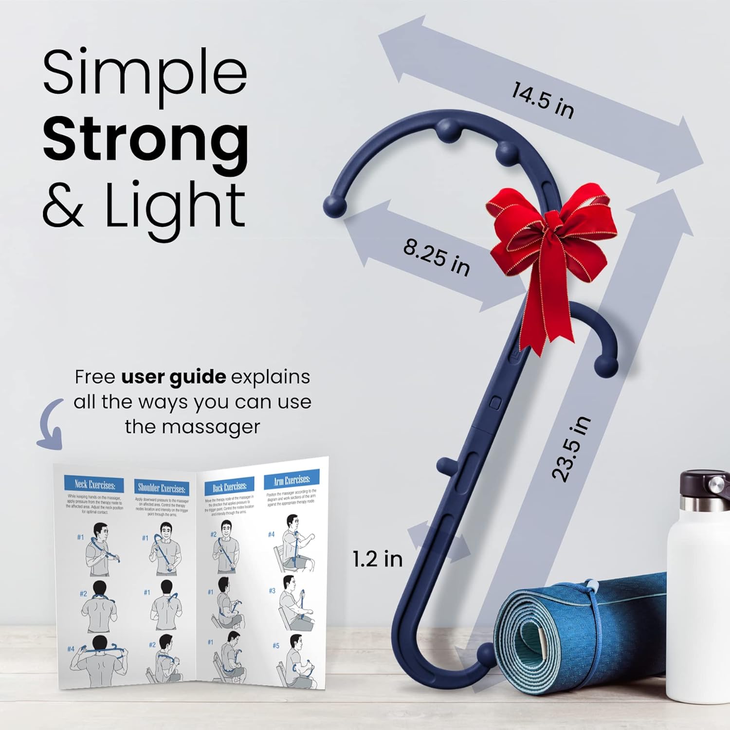 LiBa Back and Neck Massager - Trigger Point Massage Tools for Pain Relief and Manual Massage Hook Therapy Handheld Back Neck Shoulder Massager Navy - Gift for Women & Men