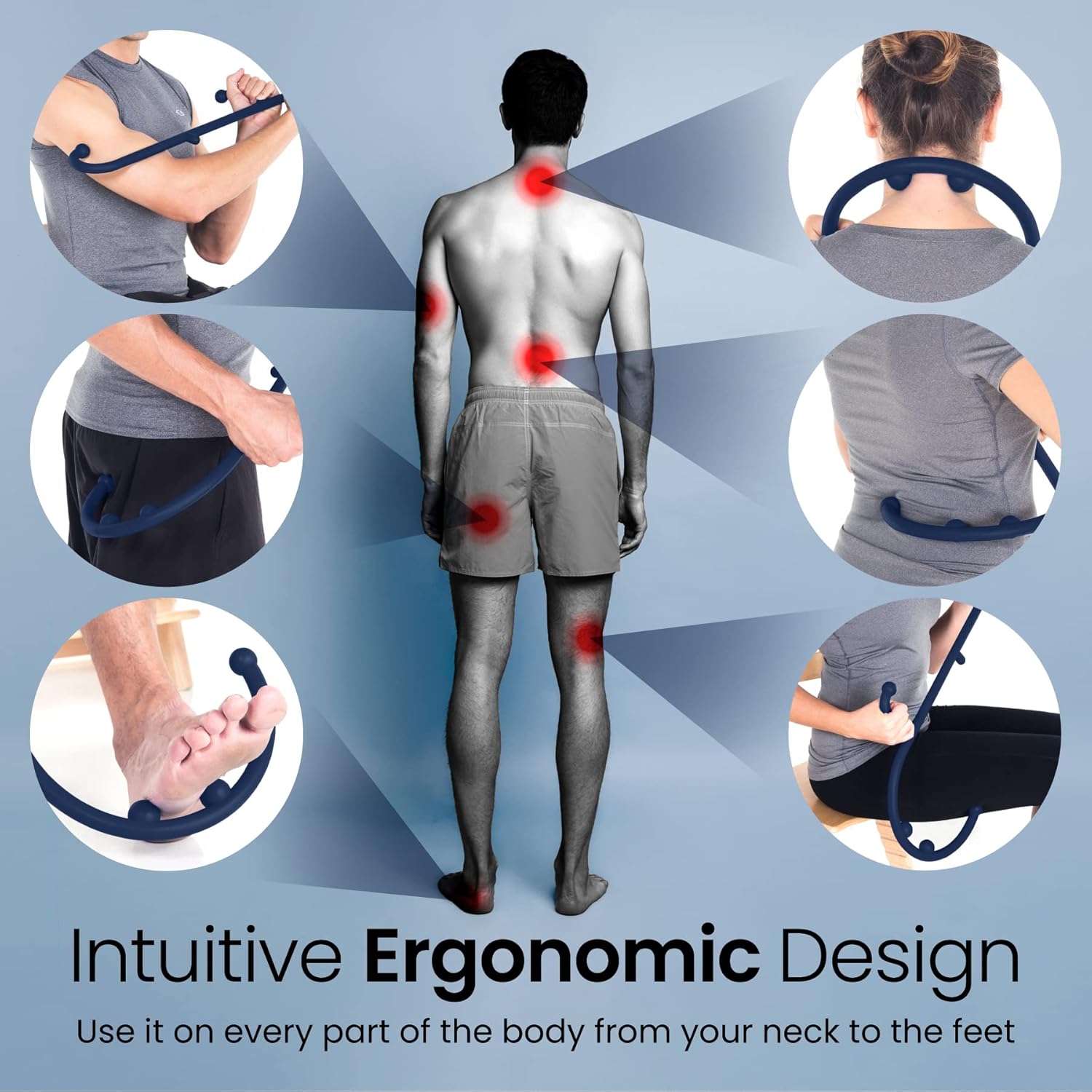 - Trigger Point Massage Tool - This back massage handheld's beautifully sculptured line and curves are the perfect marriage of form and function. Massager Muscle Hook helps you target pain trigger points with deep tissue. The unique design allows you to reach all body muscle groups from the neck to the feet, relaxing tight, spasmodically, and muscle knots with self massage tools.
