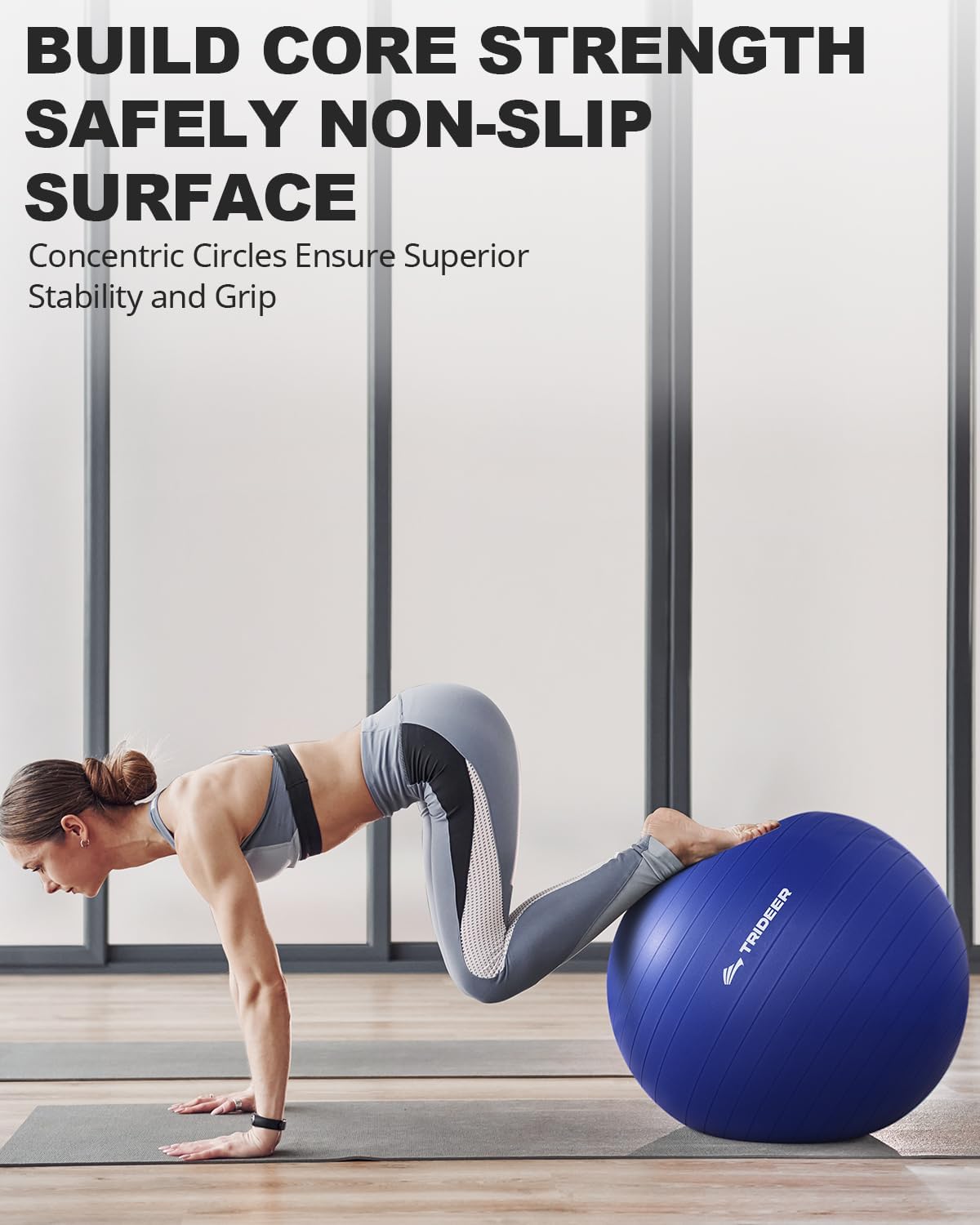 Trideer Extra Thick Yoga Ball Exercise Ball, 5 Sizes Gym Ball, Heavy Duty Ball Chair for Balance, Stability, Pregnancy, Quick Pump Included