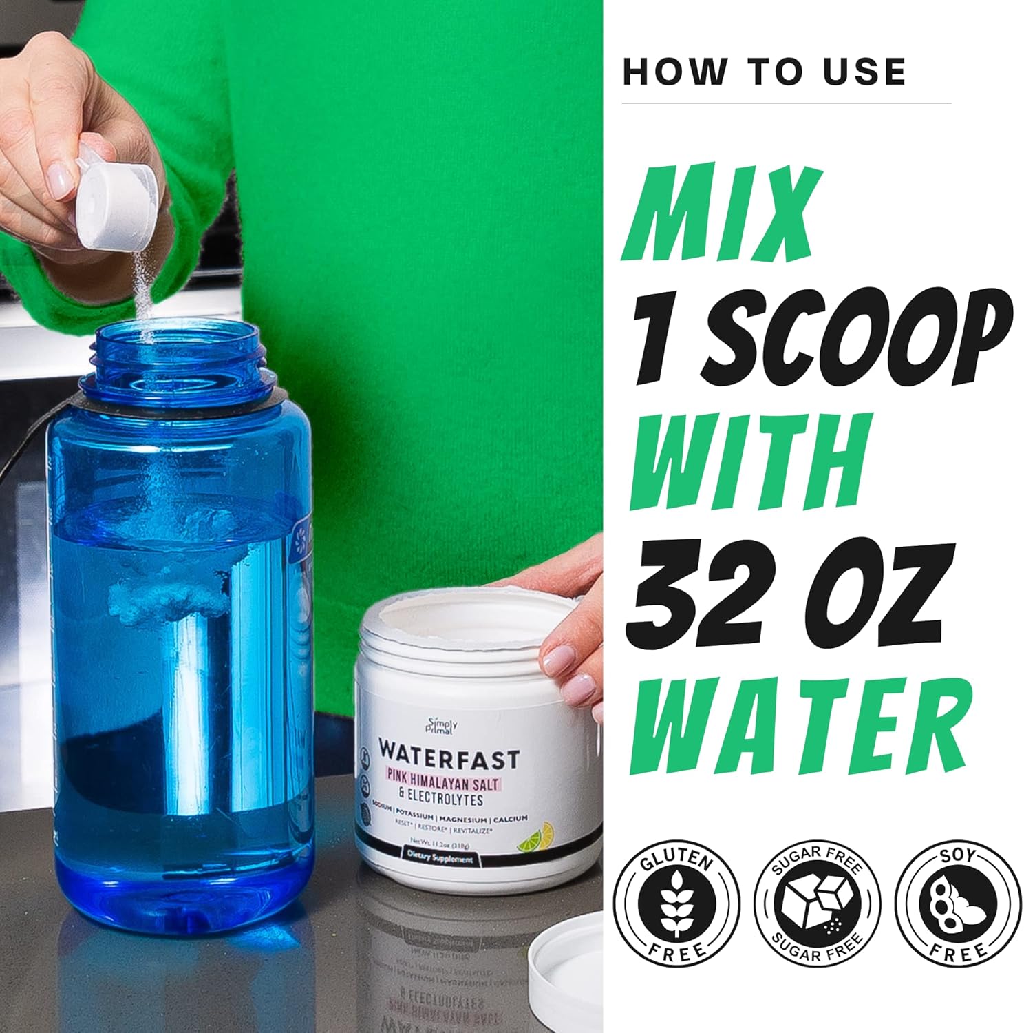 WATERFAST Keto Electrolyte Powder for Fasting and Hydration - Lemon Lime Flavor | Pink Himalayan Salt (Sodium), Potassium, Magnesium, Calcium | Sugar Free, Gluten Free, Soy Free