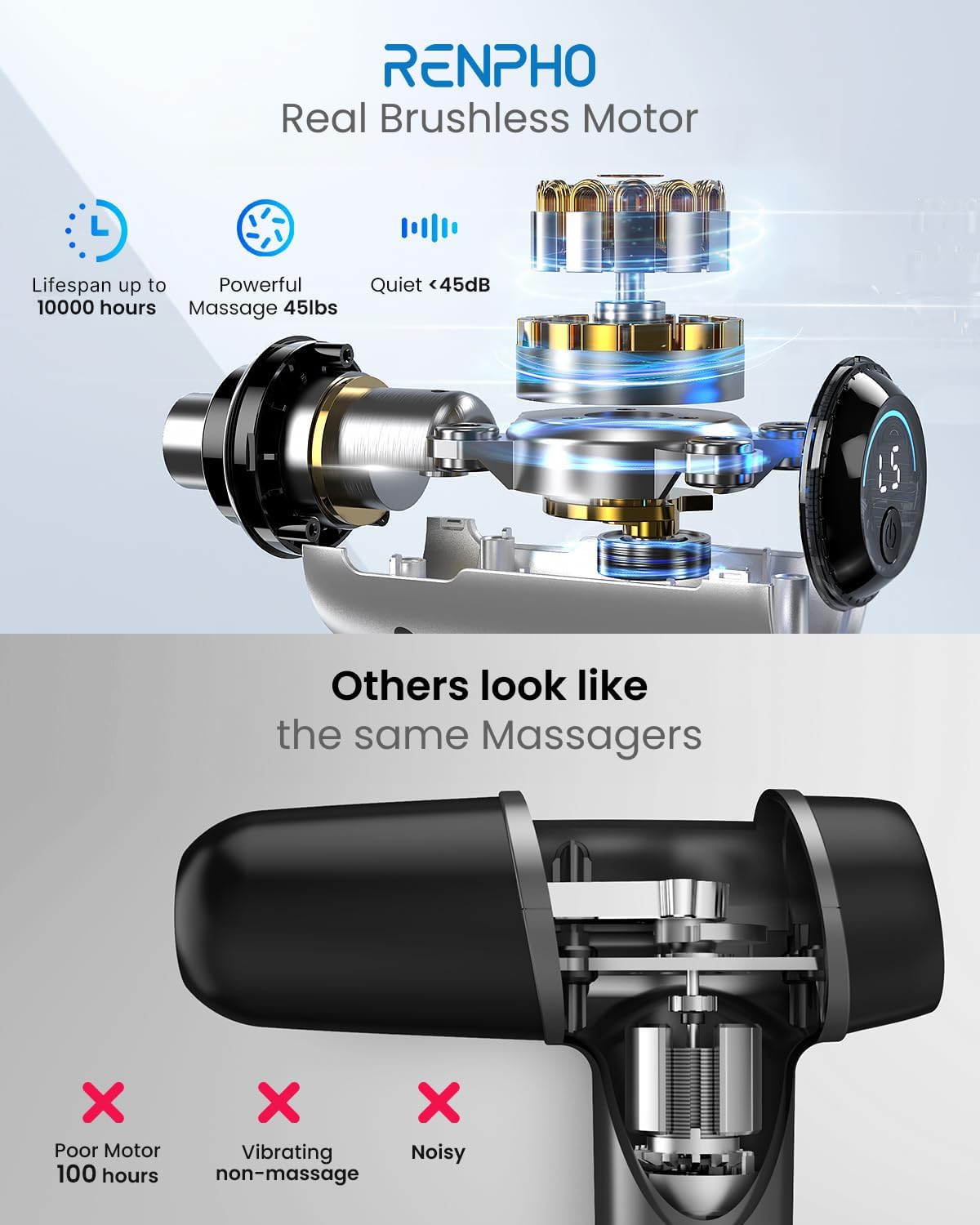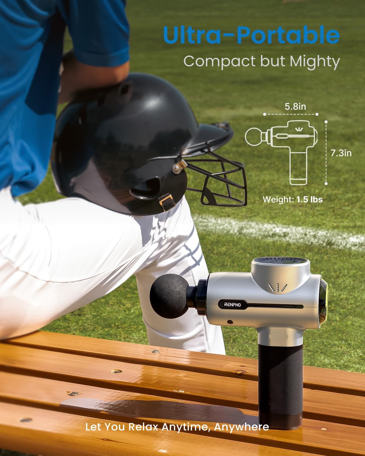 RENPHO Massage Gun Deep Tissue, Portable Percussion Massager for Back and Neck, Gifts for Men and Women, Handheld Device with Carry Case, Active