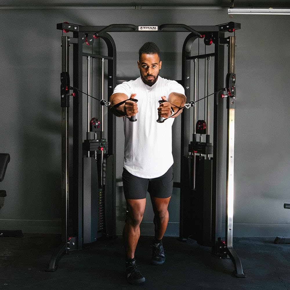 Titan Fitness Functional Trainer Cable Crossover Machine, 200 LB Double Weight Stack, 2:1 Cable Pull Station, Home Gym Workout Weight Training Machine with Attachments