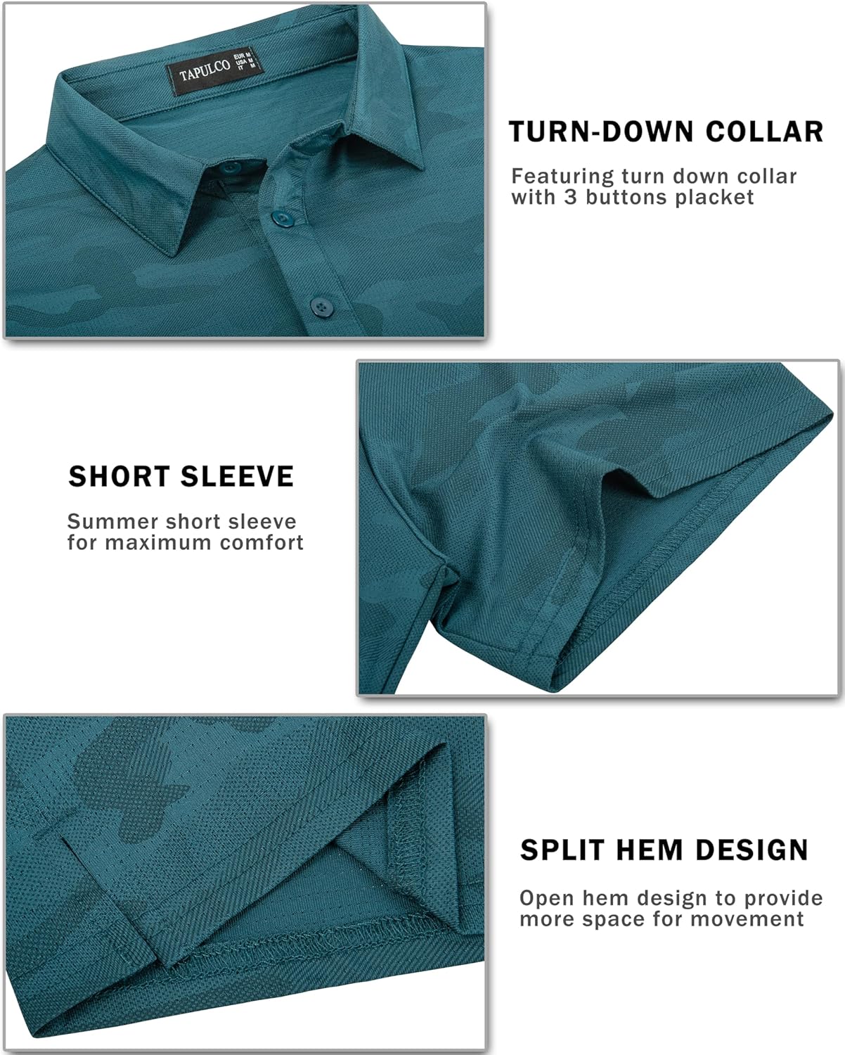 TAPULCO Mens Quick Dry Polo Shirts Camouflage Pattern Performance Athletic Lightweight Breathable Casual Golf Tshirts
