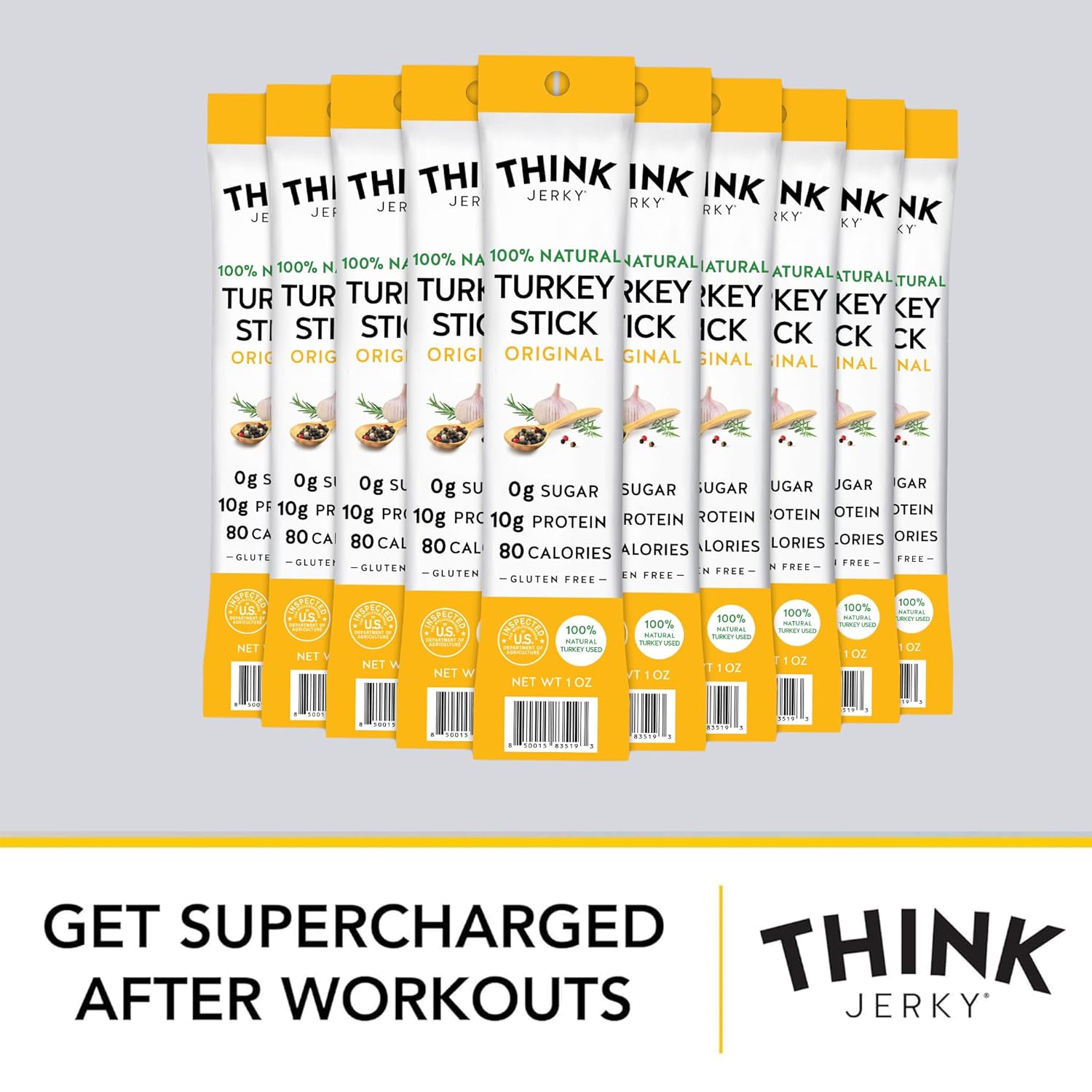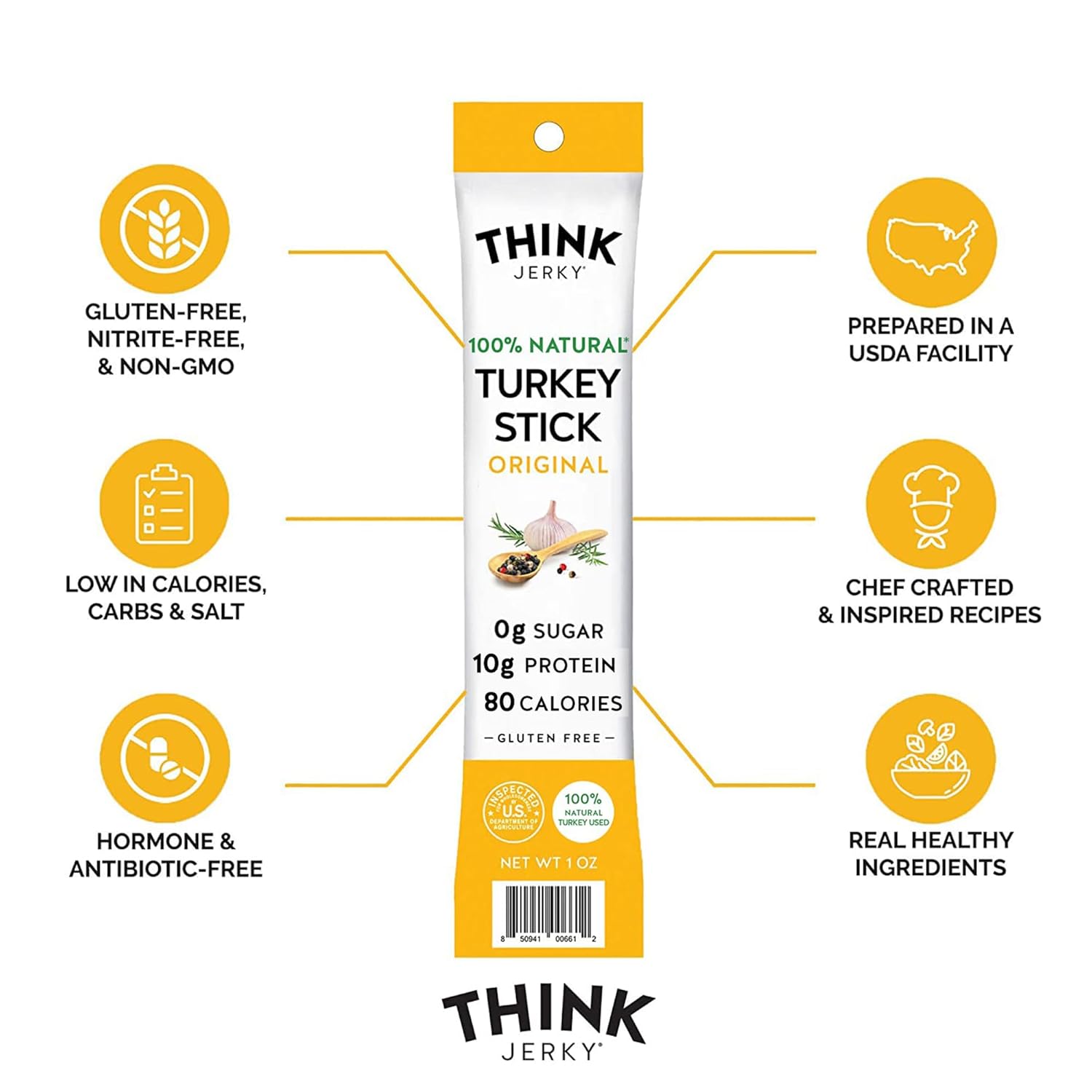 Think Jerky All-Natural Turkey Sticks, Gluten and Sugar Free, No Nitrates, Keto Paleo Friendly High Protein Low Carb Meat Snack - 1.0 oz Sticks, 20 Pack