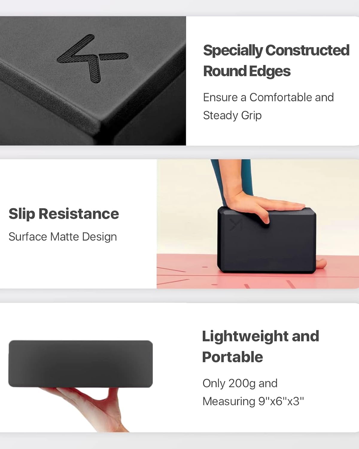 - Slip-Resistance Surface -- The surface of the yoga blocks adopt closed-cell treatment, a non-slip, textured surface which can effectively prevent moisture, allows you to maintain control and stability throughout your practice
