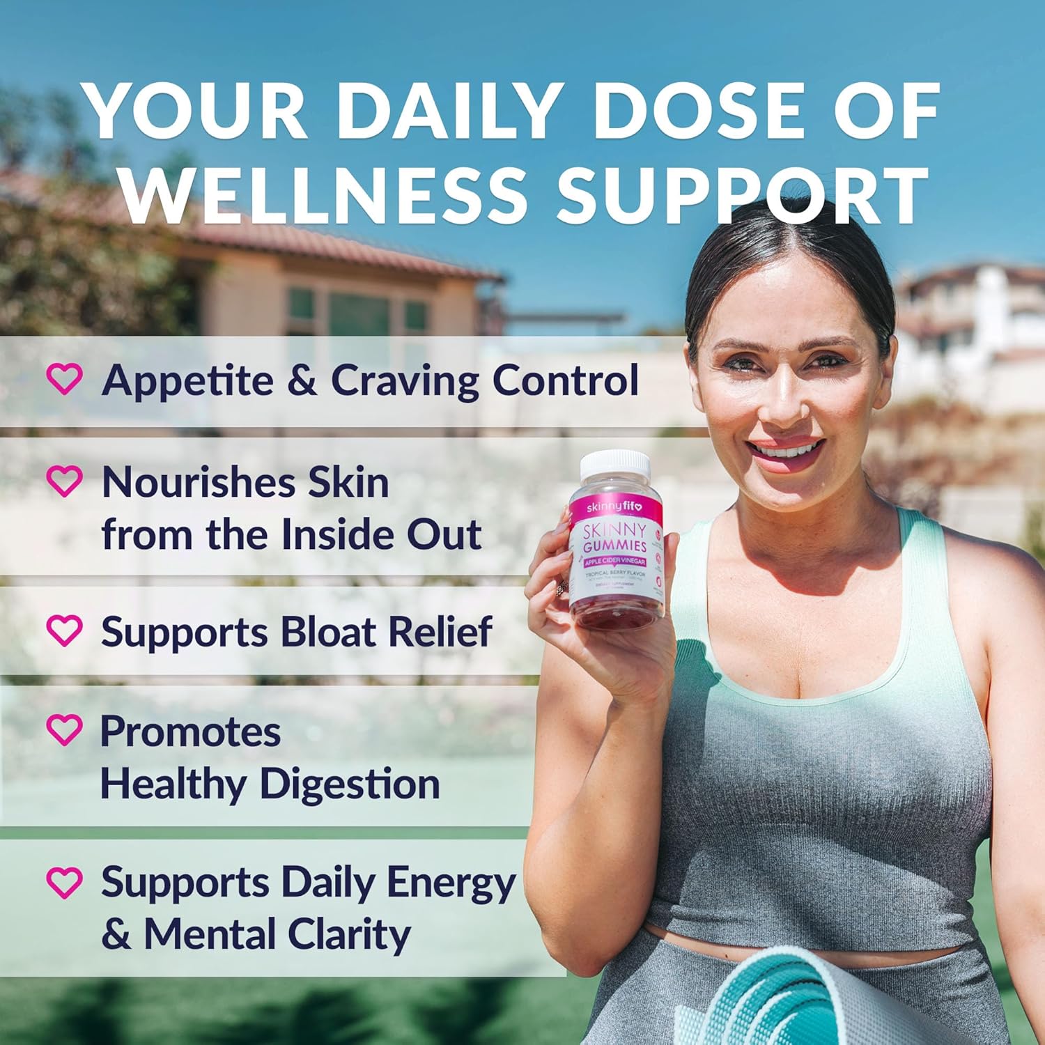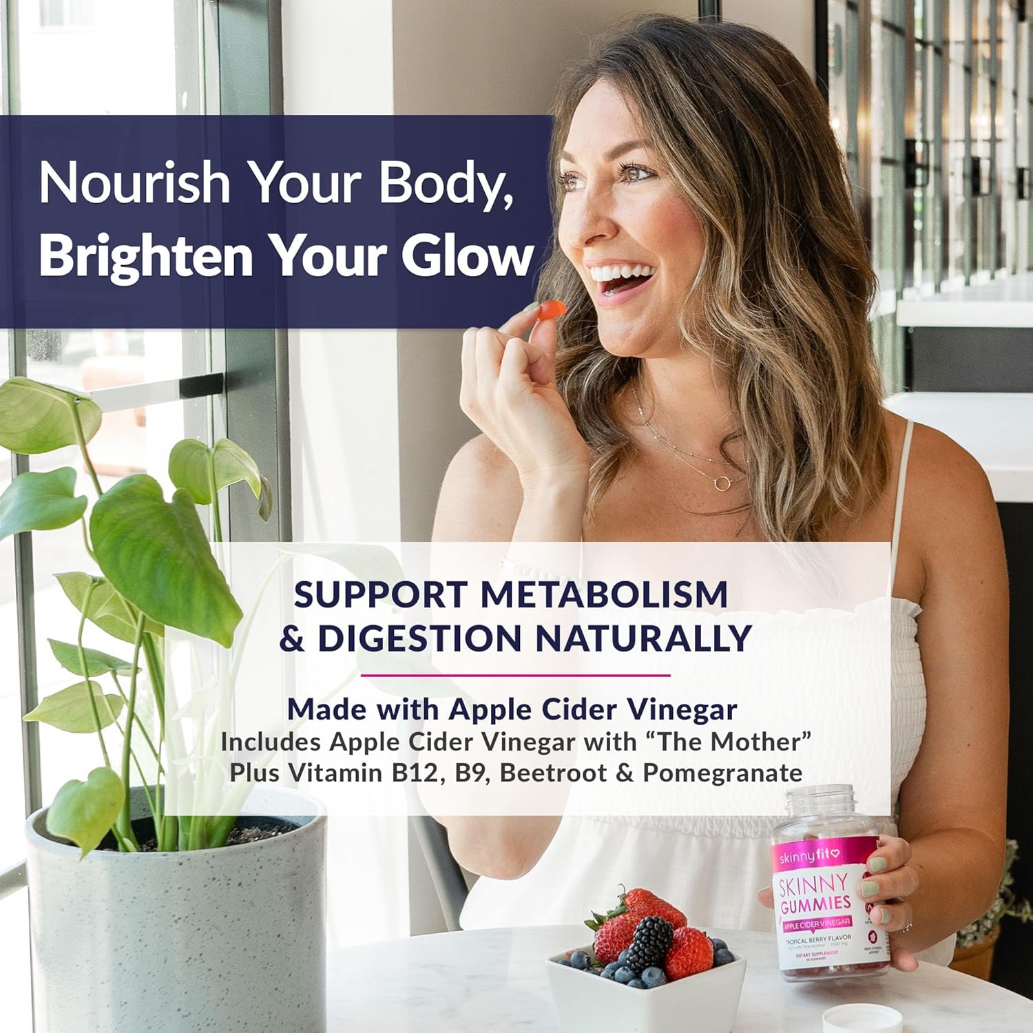 SkinnyFit Skinny Gummies Apple Cider Vinegar Gummies w/ The Mother, Healthy Weight, Immune Support, Vitamin B9, B12, Beetroot, Pomegranate, Vegan-Friendly, 60 Count