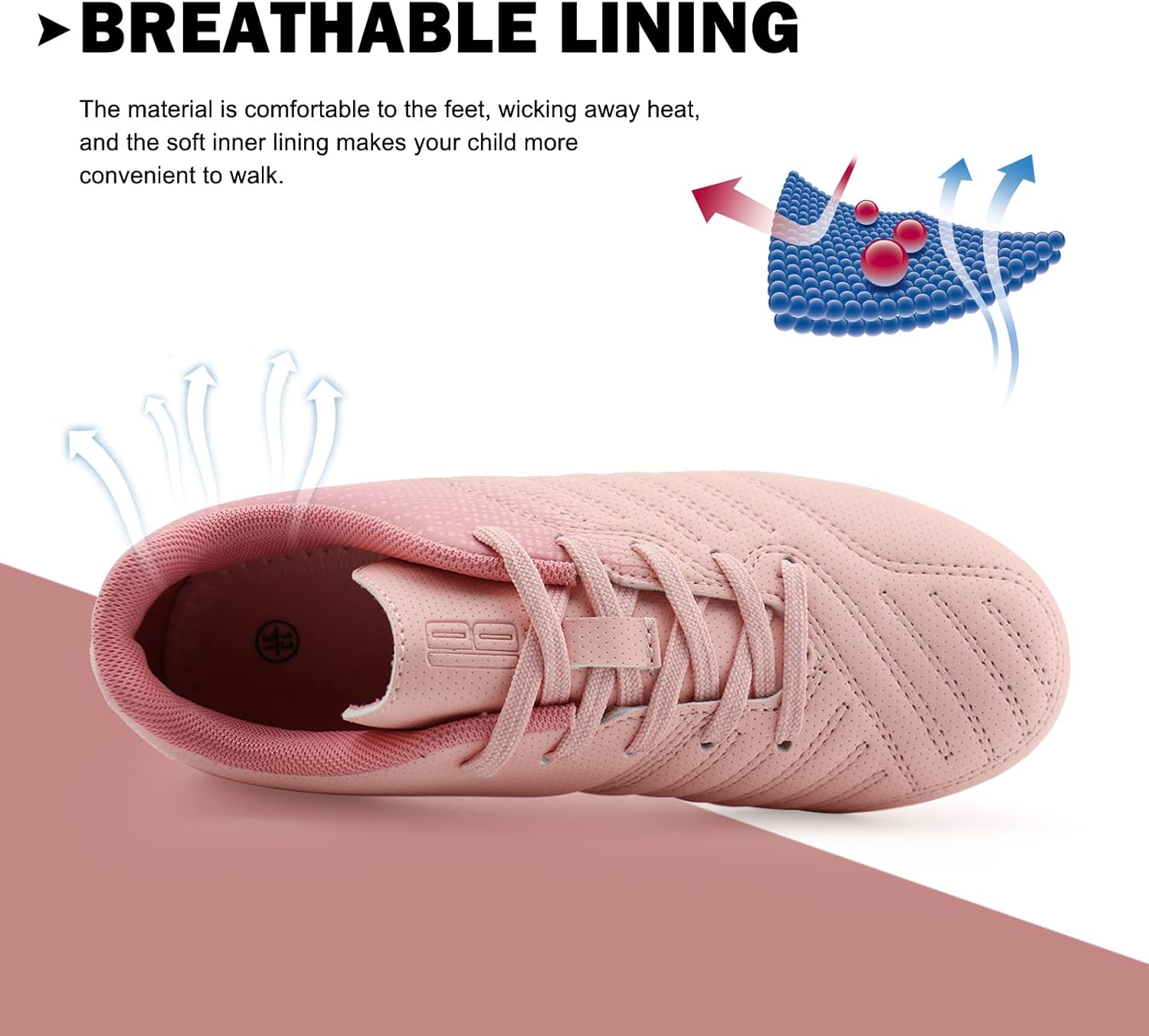 - The soccer cleats' upper features texturing to facilitate ball control.