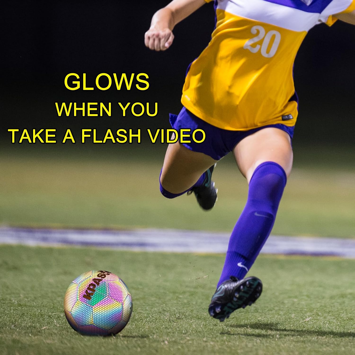 Soccer Ball, Holographic Reflective Glowing Soccer Ball for Men Women Training