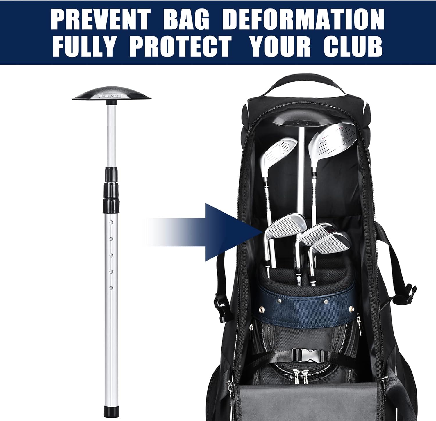 - ✨ ANTI-IMPACT DESIGN : The Golf travel bag support system can extended to 53 inches and collapses to 20 Inches. It will fit all sizes of golf travel bags and is easy to store. The rubber of top support cover has great strength and elasticity , which reduces impact force from outside and provides excellent protection all time.
