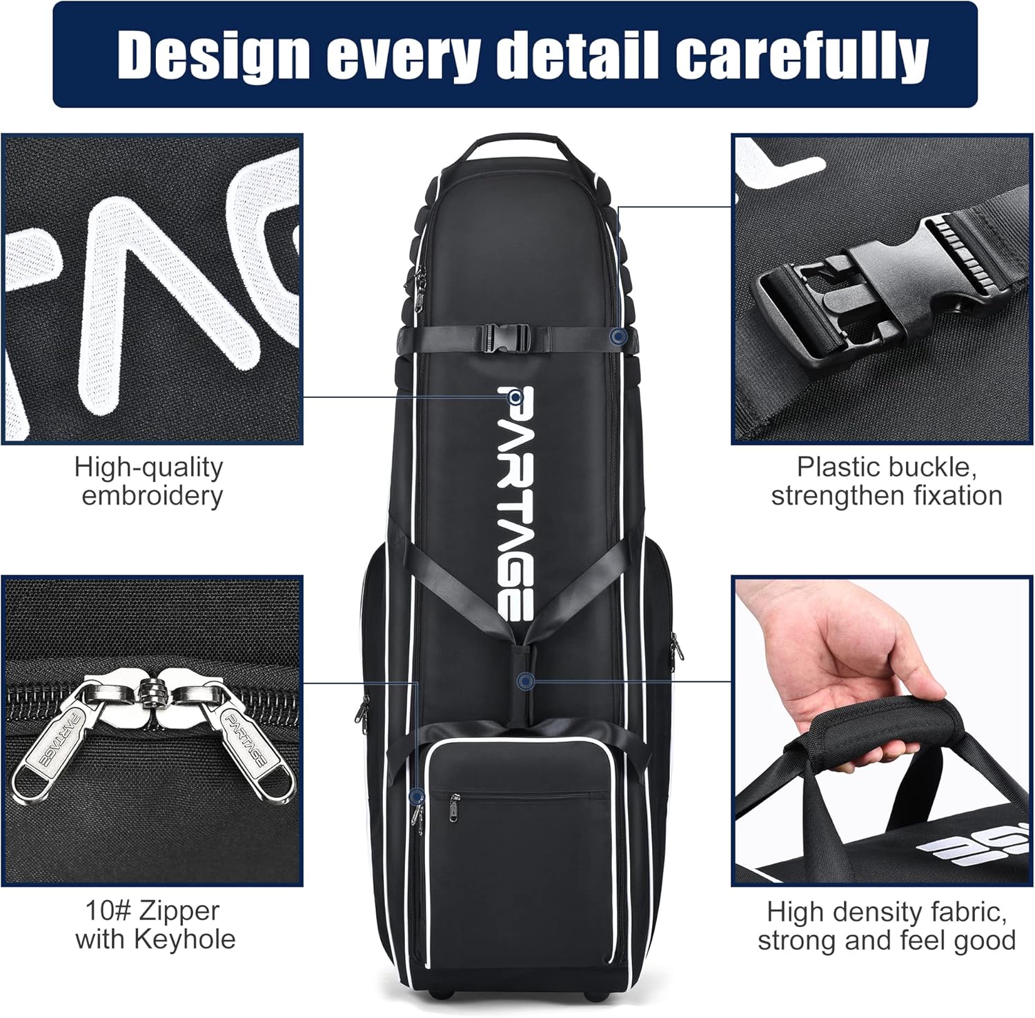 Partage Golf Travel Bag with Wheels, Golf Travel Case for Airlines, 900D Heavy Duty Oxford -Black