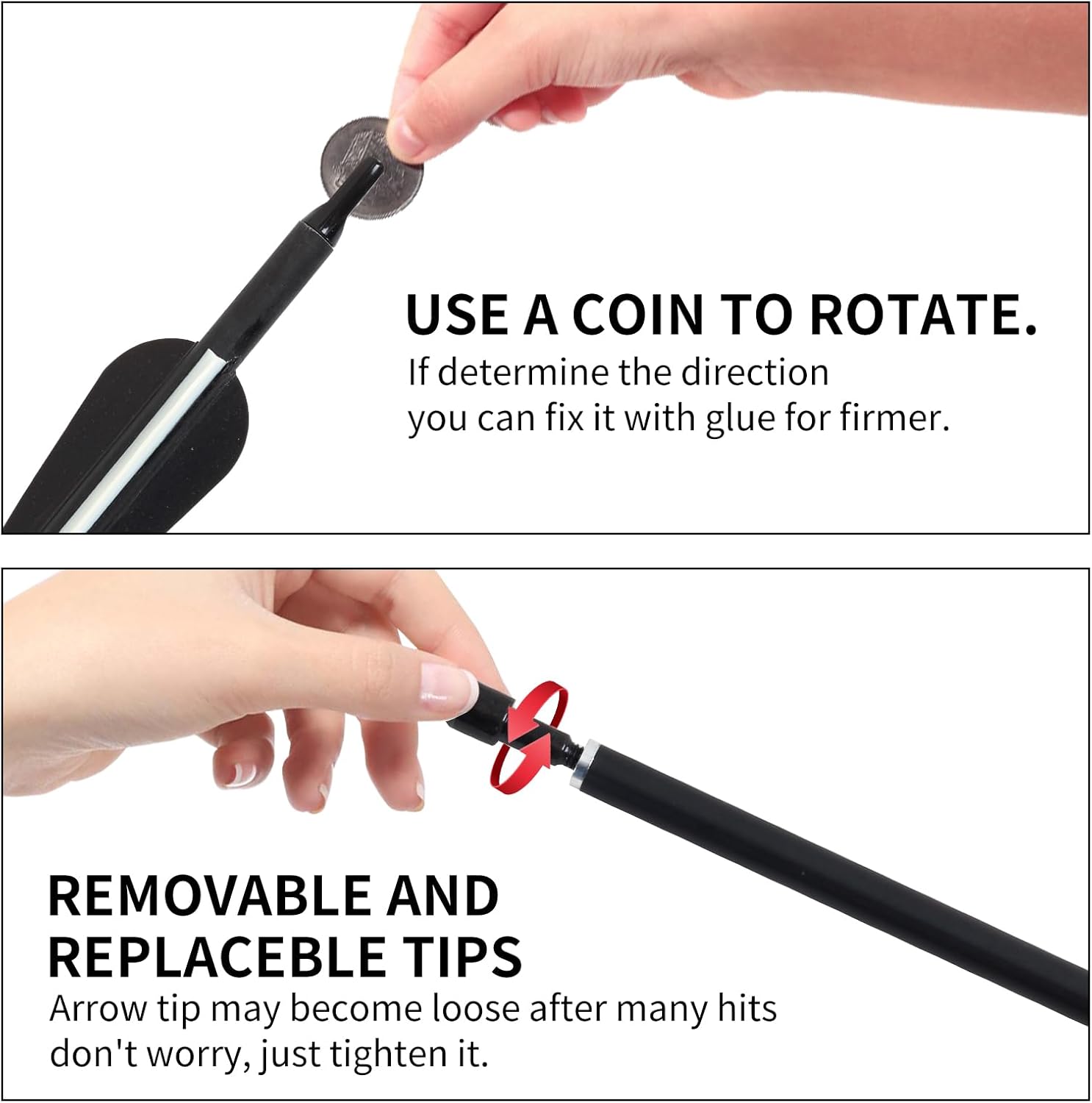 - High-Quality 31 Inch Carbon Arrows: Archery Arrows for Recurve Bow are solid & well made. Precision Carbon Hunting Arrows made for extended durability and long lasting target practice. 3" TPU Shield Shape Fletching Vanes keep a good balance and a straight flight path when shooting. Nocks are not fixed by glue which can be adjustable for both compound bow and recurve bow. 100-Grain Metal Tips are replaceable to account for wear and tear from repeated practice.