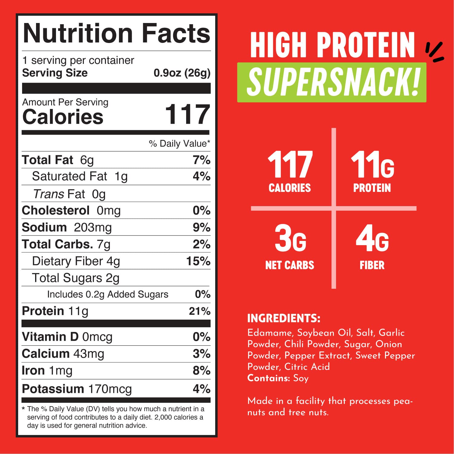 - HIGH PROTEIN SUPERSNACK: Packed with 11 grams of complete plant-based protein β one serving of The Only Bean Edamame Beans can replace a standard protein bar post-workout to help you grow strong and recover quickly!