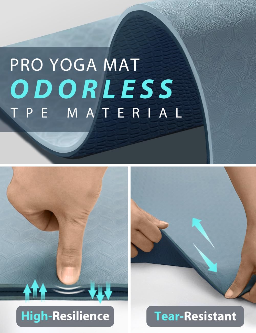 - COMFY Β· HIGHLY ELASTIC TPE MATERIAL - More expensive but worth it. TPE is the latest technological improvement to the traditional yoga mats. No latex, no PVC, or any heavy metal