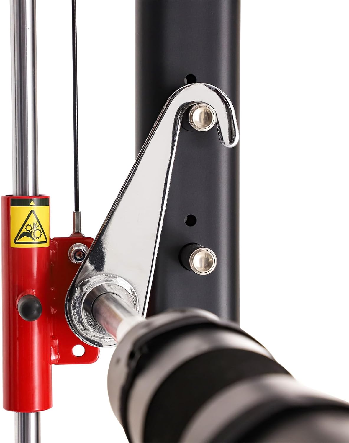 - Olympic free-weight rack– Engage in intense weightlifting or strength training right in the comfort of your home! It includes 6 weight plate pegs that are built into the frame, letting you organize weights/barbells on the machine for easy accessibility.(Not include the weight plates)