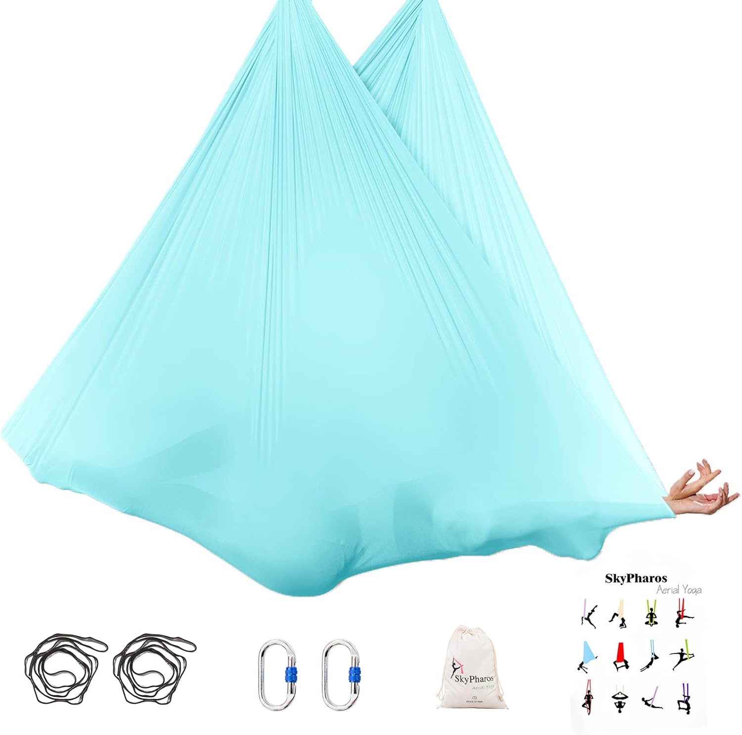 - QUALITY SILKS - Our professional aerial yoga swing set is made of 40 Denier Nylon Tricot for the ideal aerial silks and aerial tissue. This low stretch aerial fabric has good color fastness and no harmful substances, you may wash it and easy to dry.