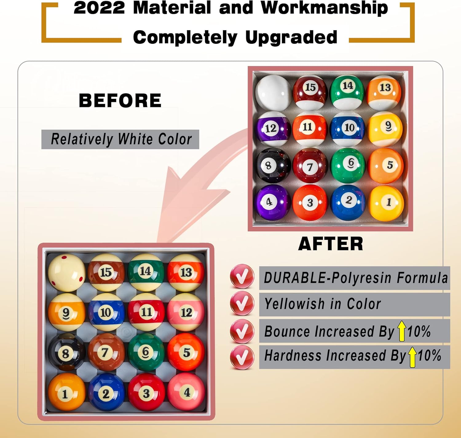 - 【PROFESSIONAL WORKMANSHIP】:Each billiard balls are produced to the most exacting tolerances,meeting all professional quality benchmarks for size,roundness,density,balance,weight,color,and hardness.These true roll tournament billiard balls can be make a perfect shoot on the pool table for all skill level players.