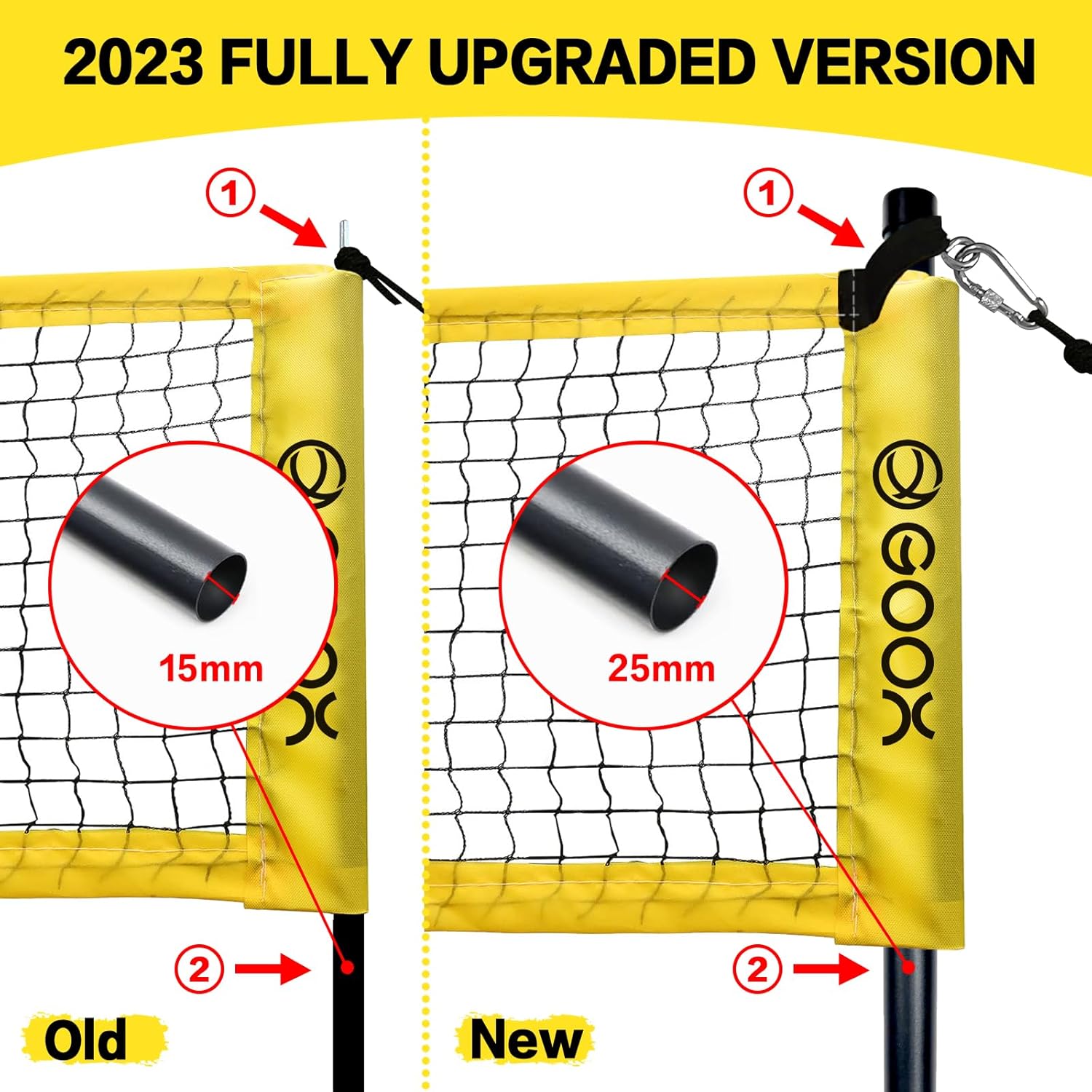 GOOX 4 Square Volleyball Net Game Set, 14 FT 4-Way Volleyball Net for Backyard Beach Lawn, Portable Four Square Volleyball Net for Adults & Youths with Vollyball, Pump, Carry Bag