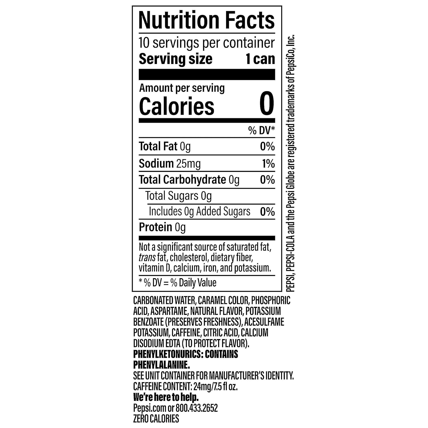 - Includes 10 (7.5oz) mini cans of Pepsi Zero Sugar Cola Soda Pop