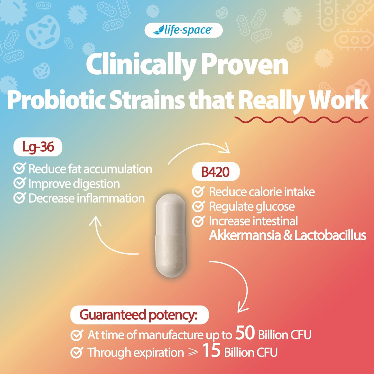- METABOLIC RESHAPING - NO DIET REQUIRED - Tired of strict diets or exhausting workouts? Life-Space Shape B420 uses two clinically studied probiotic strains and prebiotics to naturally enhance metabolic health and optimize calorie digestion. Backed by science, it supports healthy weight management without lifestyle changes.