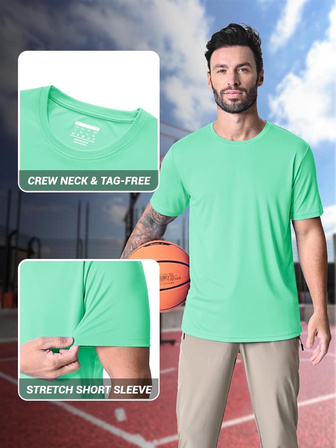 - FEATURES: Stretch short sleeves and Athletic crew neck design gives you more flexibility.