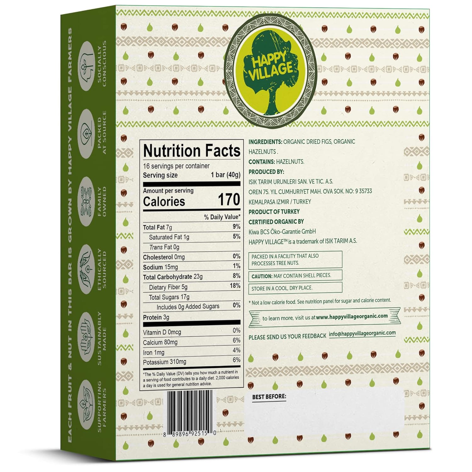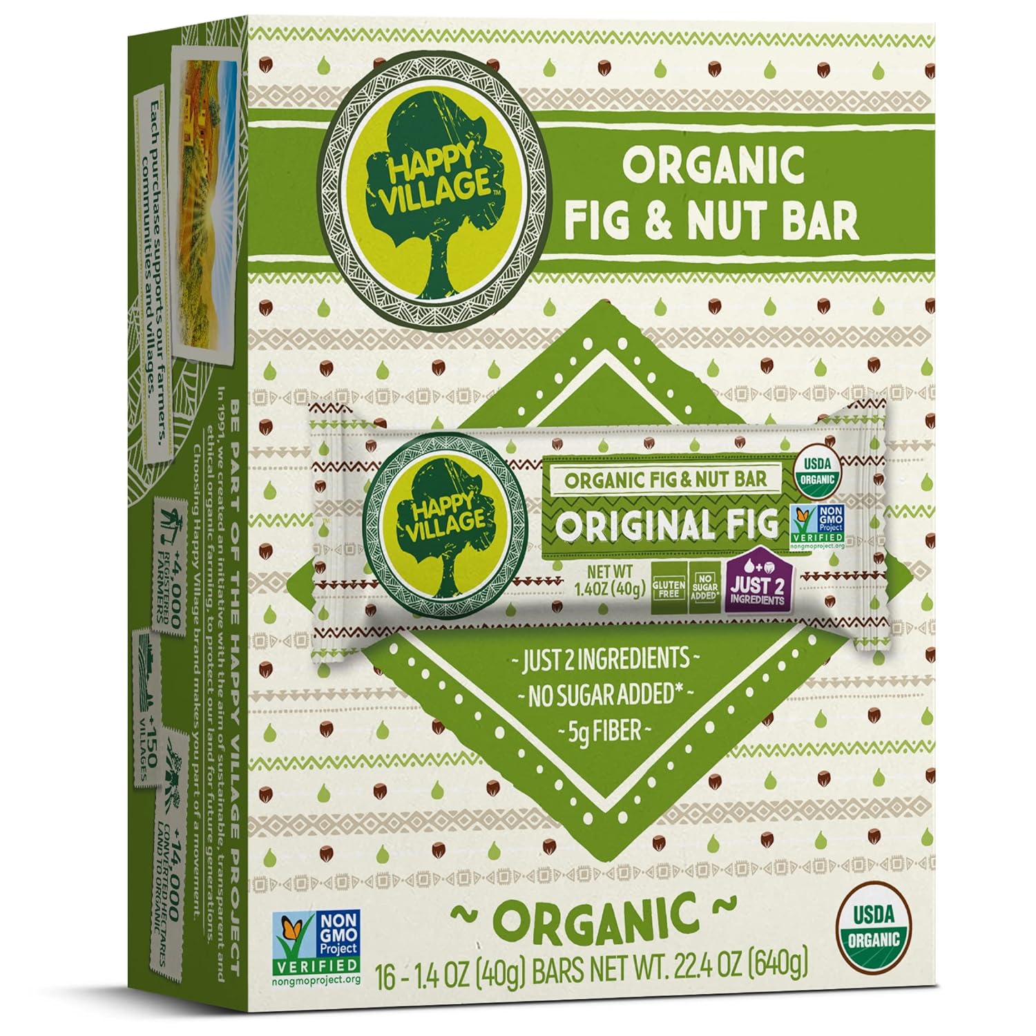 Happy Village Organic Fig & Nut Bar, ORIGINAL FIG | Only 2 Ingredients, Gluten Free, No Added Sugar, Kosher, Non-GMO, Vegan, Good Source of Fiber | Organic Healthy Snack Bars (16 bars, 1.4 OZ each)
