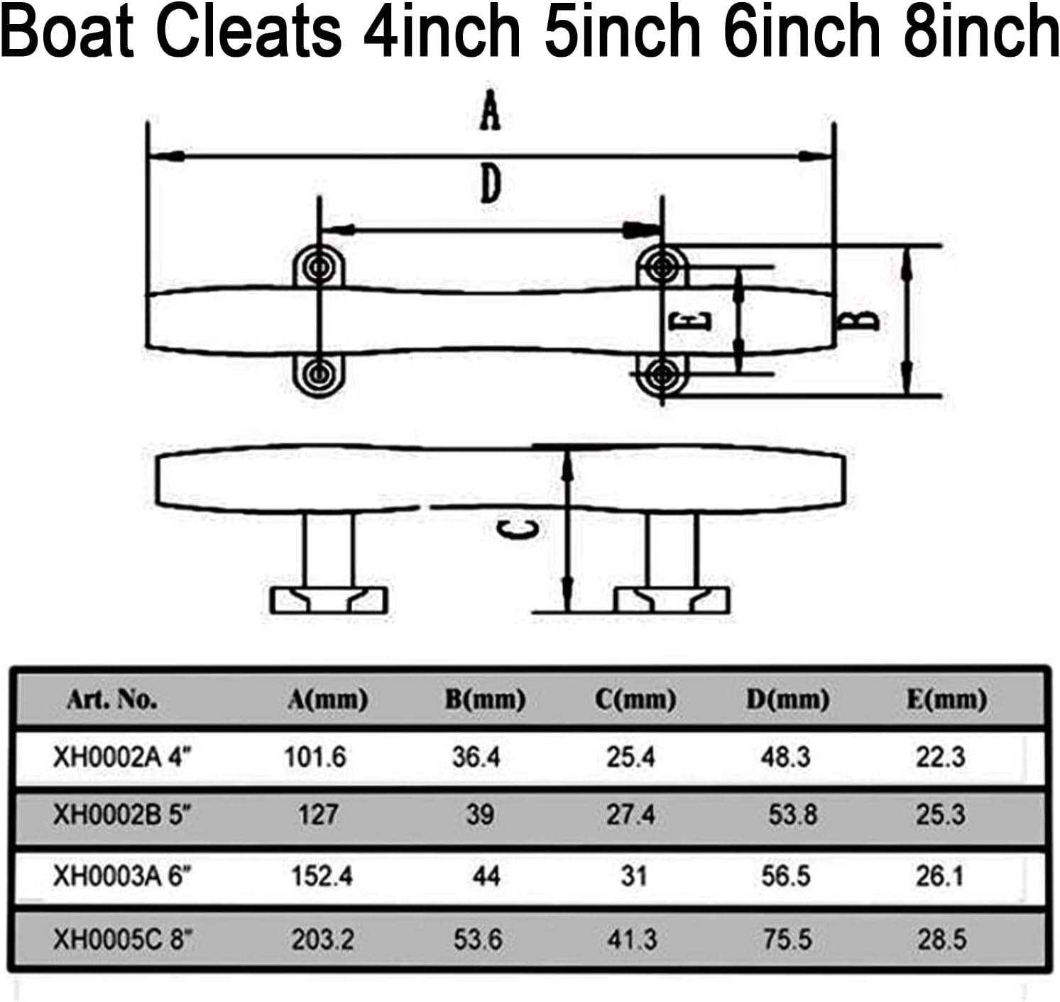 Boat Cleats 4 inch/5 inch/6 inch/8 inch Marine Dock Cleats Stainless Steel Boat Rope Cleat with Fasteners for Marine, Deck, Nautical Décor