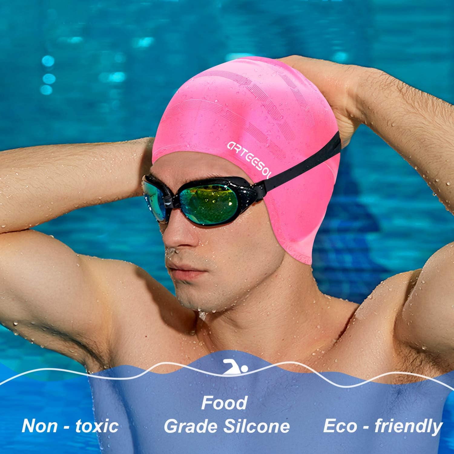 - Non-slip & Waterproof: Arteesol silicone bathing caps work well to prevent water from entering your ear and head, and with non-slip design, you don't need to worry about the swimming cap during your swimming. The only thing you need to do is enjoying your swimming.