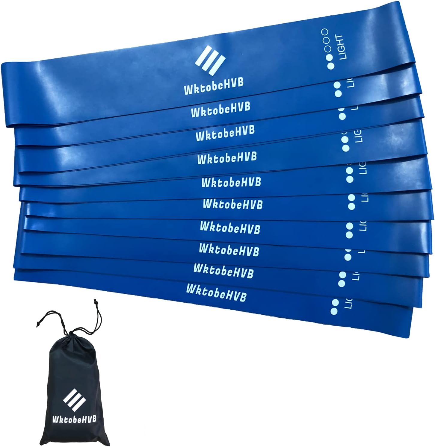 - [What You Get] Set of 10 Blue(Light,10-15lbs) Resistance Bands, all bands measure 12"×2", 1×Portable travel carry bag and 1×Instruction guide, the instruction booklet includes dozens of different illustrated exercises that demonstrate how to use our resistance bands