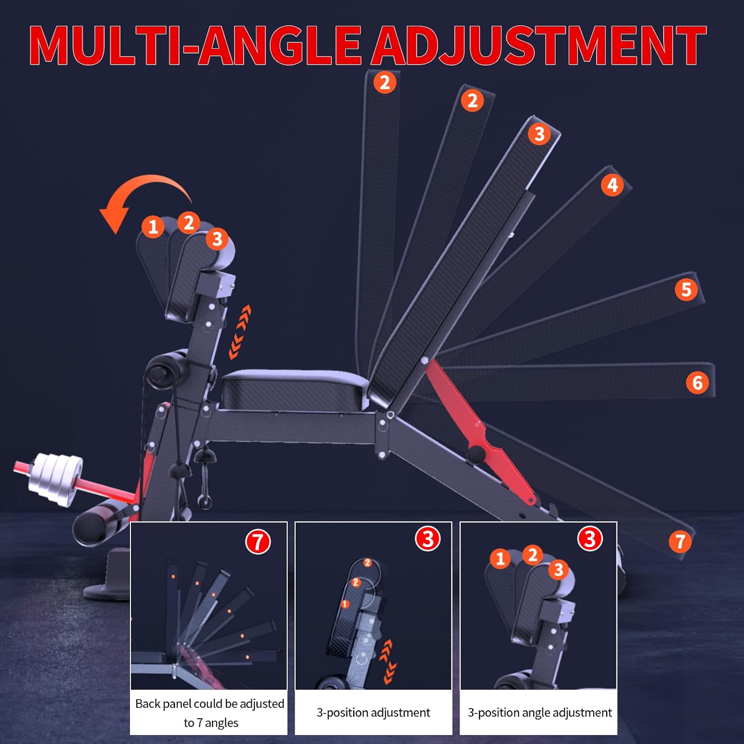 Adjustable Weight Bench,Utility Workout Bench Foldable Incline Decline Benches for Home Gym Full Body Workout,Load 600LBS