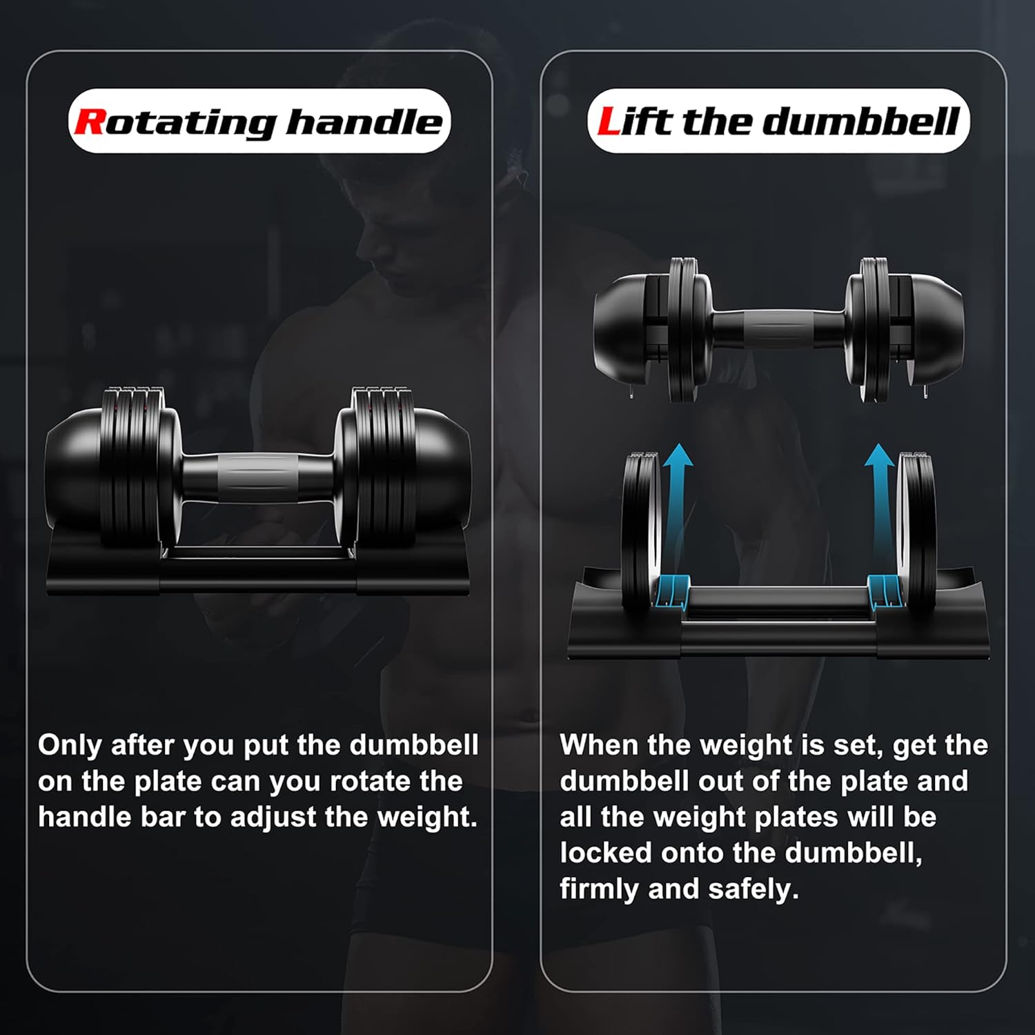 Adjustable Dumbbell,22LBS 44LBS 52LBS Dumbbell Set with Tray for Fitness, Fast Adjust Weight by Turning Anti-Slip Handle, Safety with 8 Lock Slots, Suitable for Men and Women