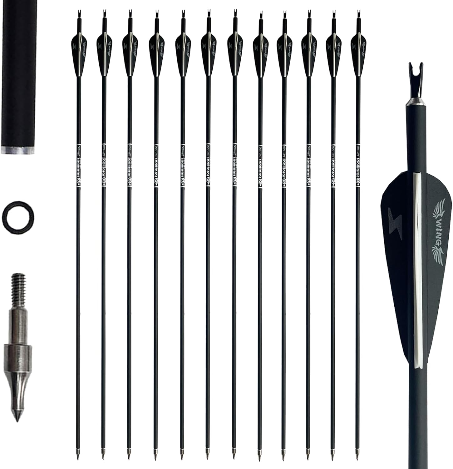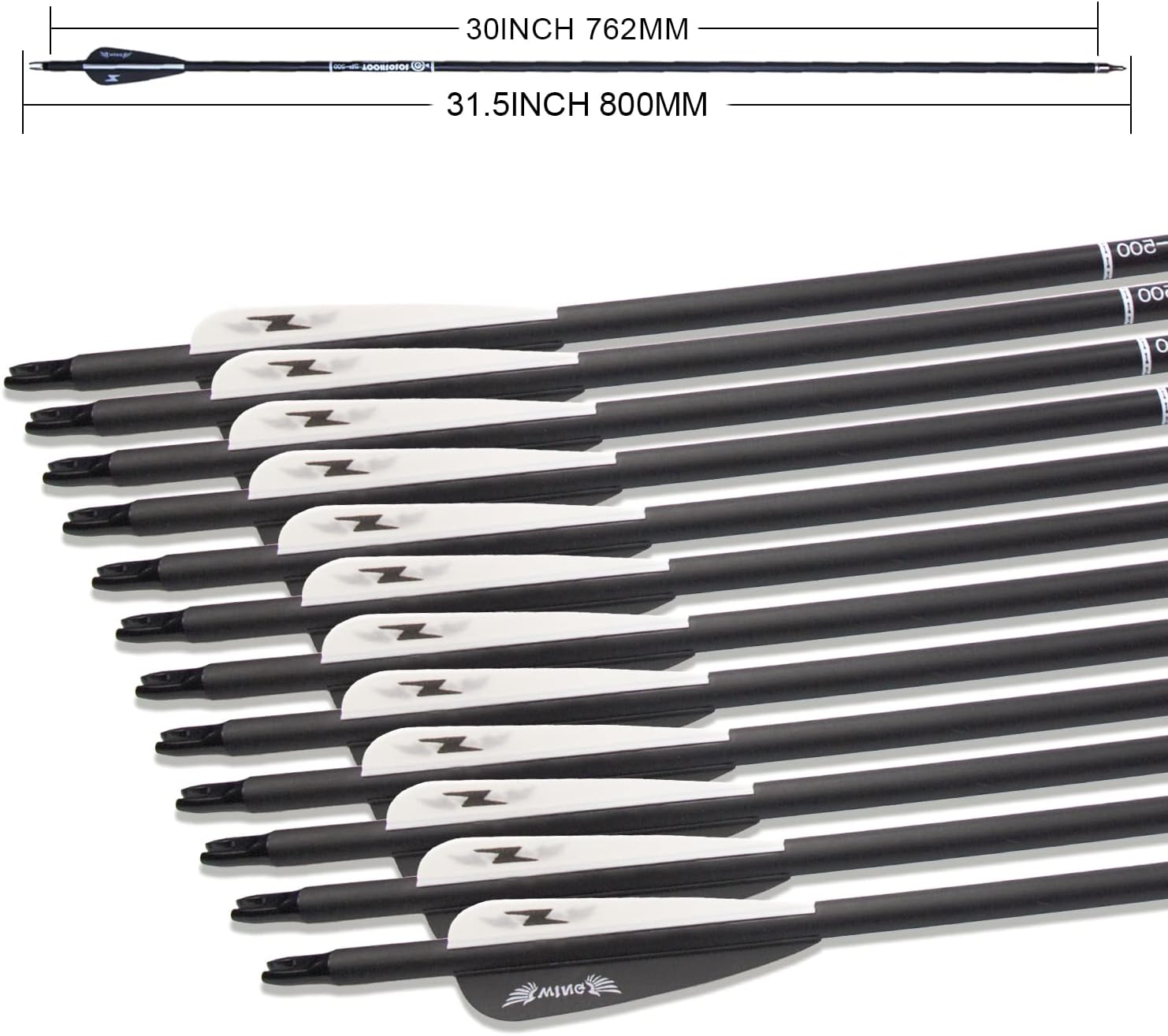 31inch Carbon Arrow Archery Targeting Practice Hunting Arrows for Compound & Recurve Bow with Removable Tips(Pack of 12)
