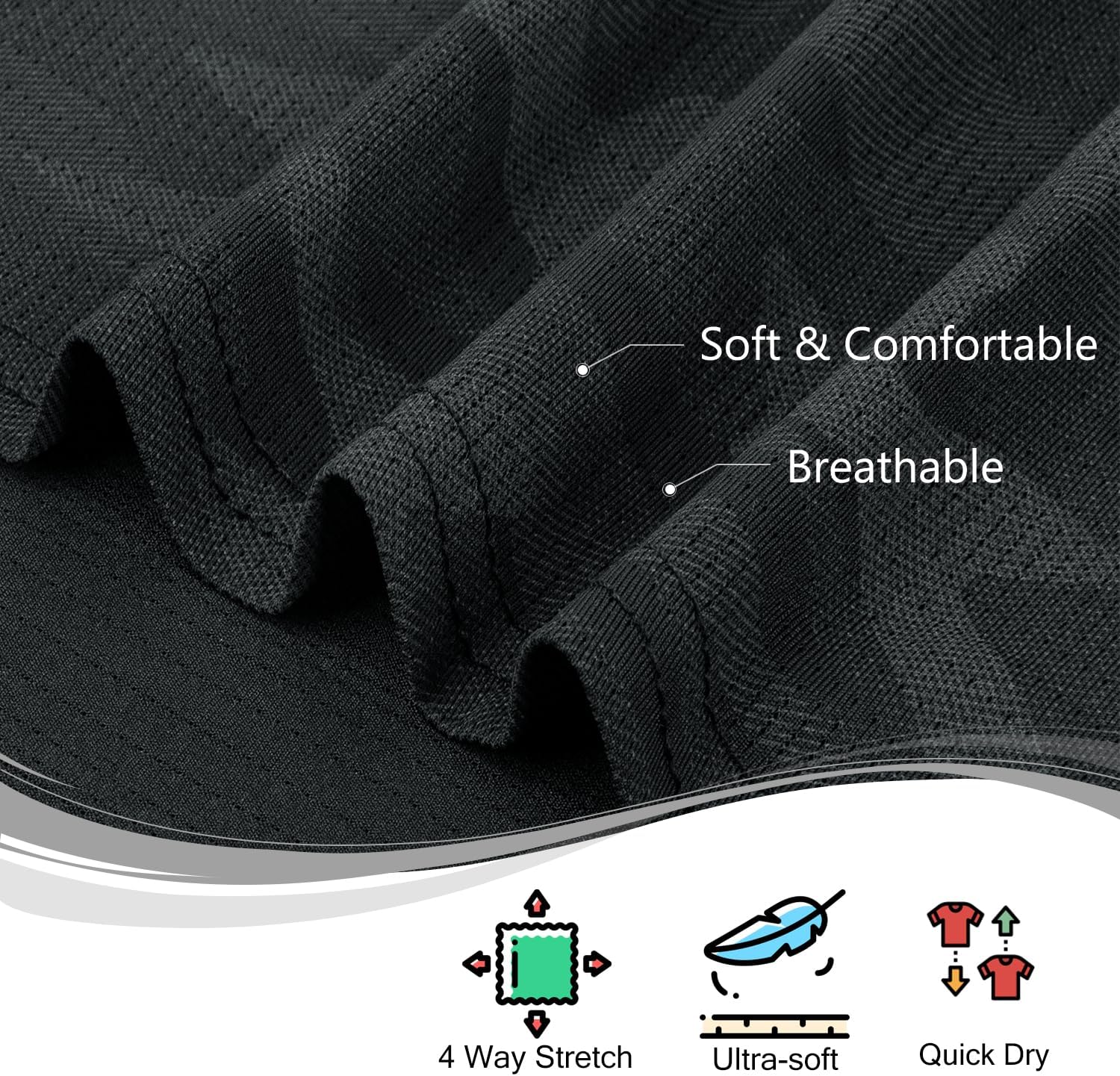 - QUICK-DRY AND SWEAT-WICKING: 95% Polyester + 5% Spandex. Silky and Wrinkle Free, High Stretch and Lightweight, Soft and Comfy. Wicks away moisture and dries remarkably fast by incorporating soft and breathable fabrics.