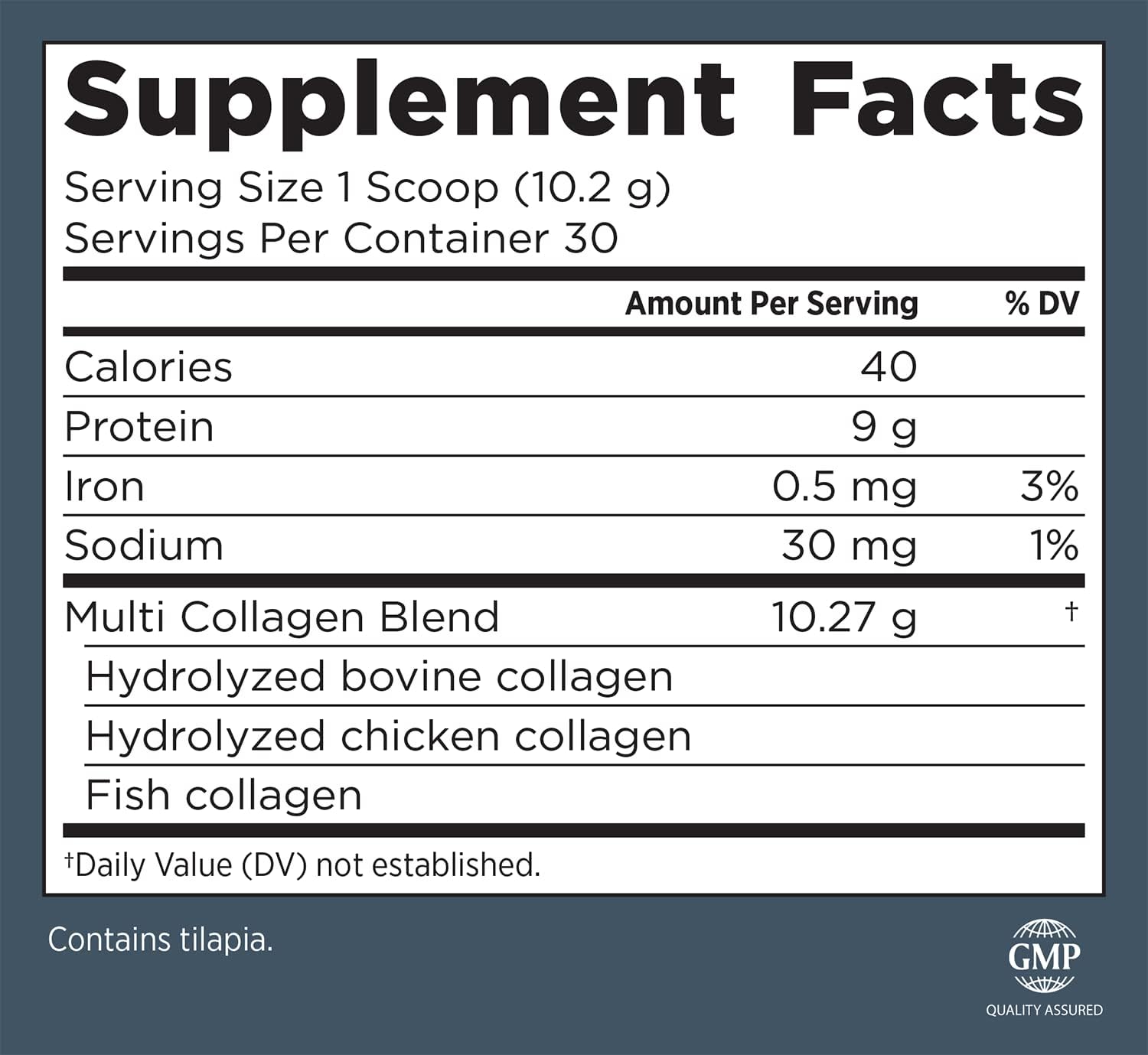 - Premium Multi-Collagen Supplement: The most abundant protein in your body, collagen supplements provide a plethora of benefits, such as firmer, youthful skin, strengthening your hair and nails, and supporting your joints. Our multi-collagen blend contains hydrolyzed bovine & chicken collagen along with fish collagen. With just a scoop a day mixed with 8 oz. of room-temperature water or liquid, witness your skin, nails, and hair flourish.