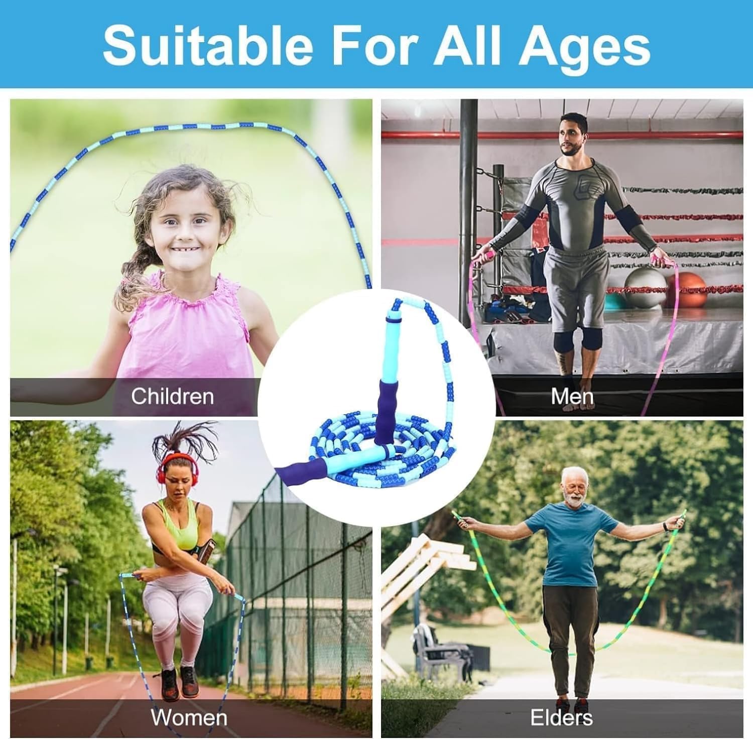 GRAWUN Jump Rope For Kids, Soft Beaded Jump Rope, Adjustable Length Tangle-Free Segmented Soft Beaded Skipping Rope,for Women, Men and Kids Keeping Fit, Workout and Weight Loss