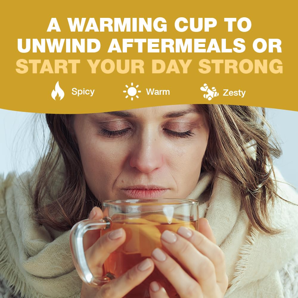 - 100% PURE GINGER TEA - Awaken your senses with the robust essence of our premium Ginger tea bags, expertly crafted from the finest ginger roots. Each package releases a bold, aromatic spice, offering a warming tea experience that invigorates your palate.